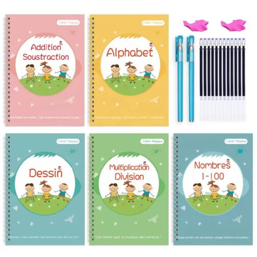 ⭐ 5 cahiers d’écritures magiques ⭐ à encre effaçable Pack complet pour enfants de + de 3 ans ⭐FRANCAIS ⭐ ANGLAIS ⭐OU ARABE (Copie)