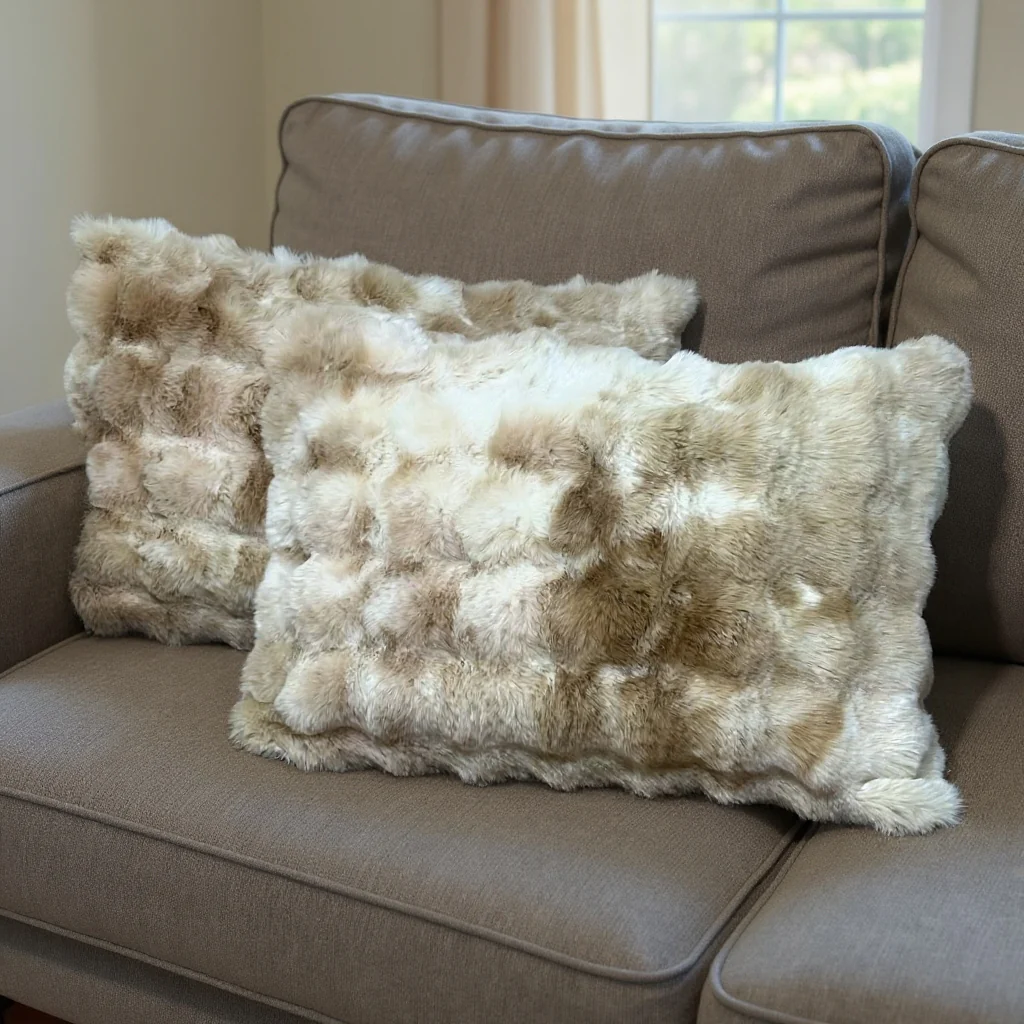2 Taies d’oreillers Décoratif 50*70 cm en Forrure de Lapin