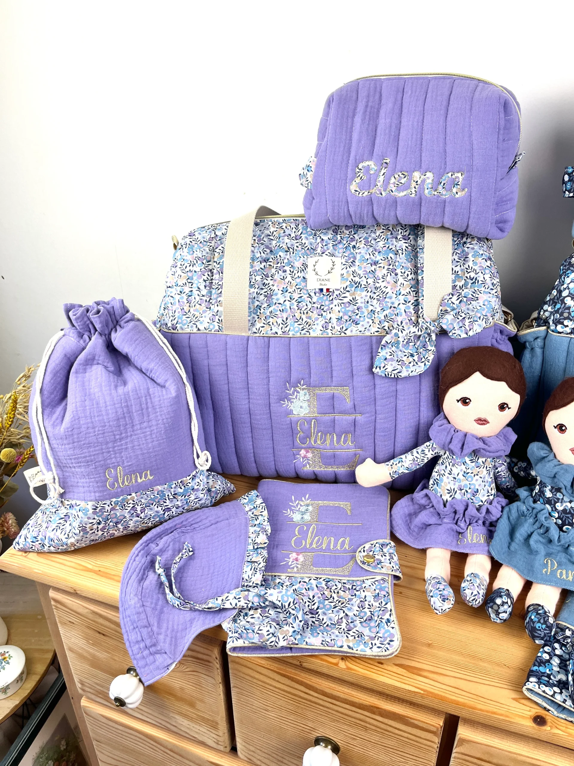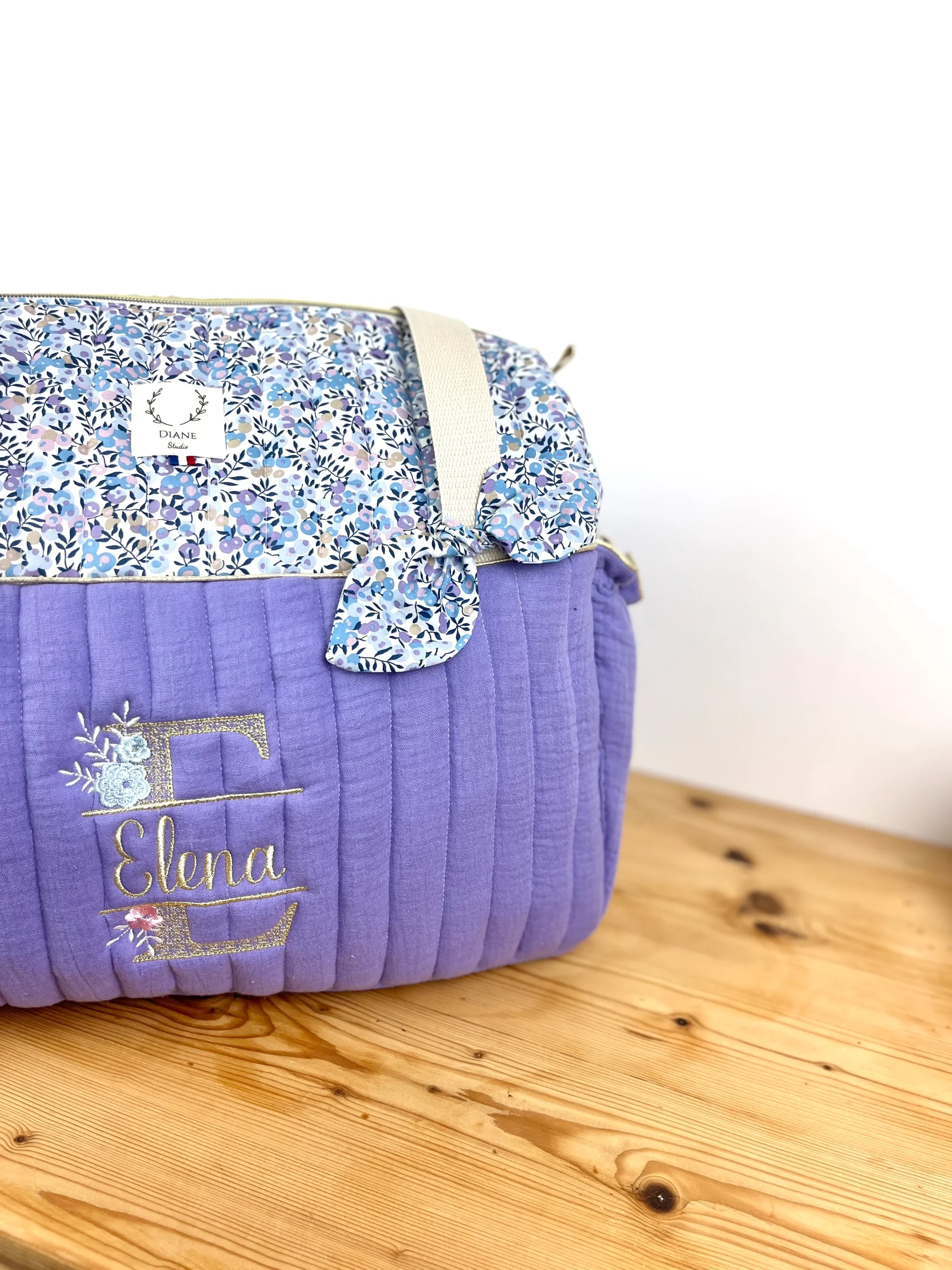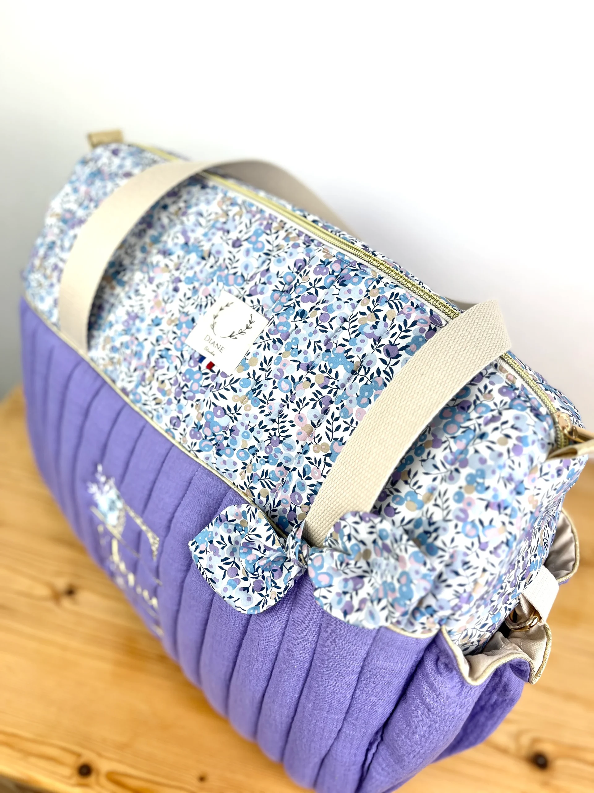 Aimé le sac à langer matelassé lilas et Liberty wiltshire