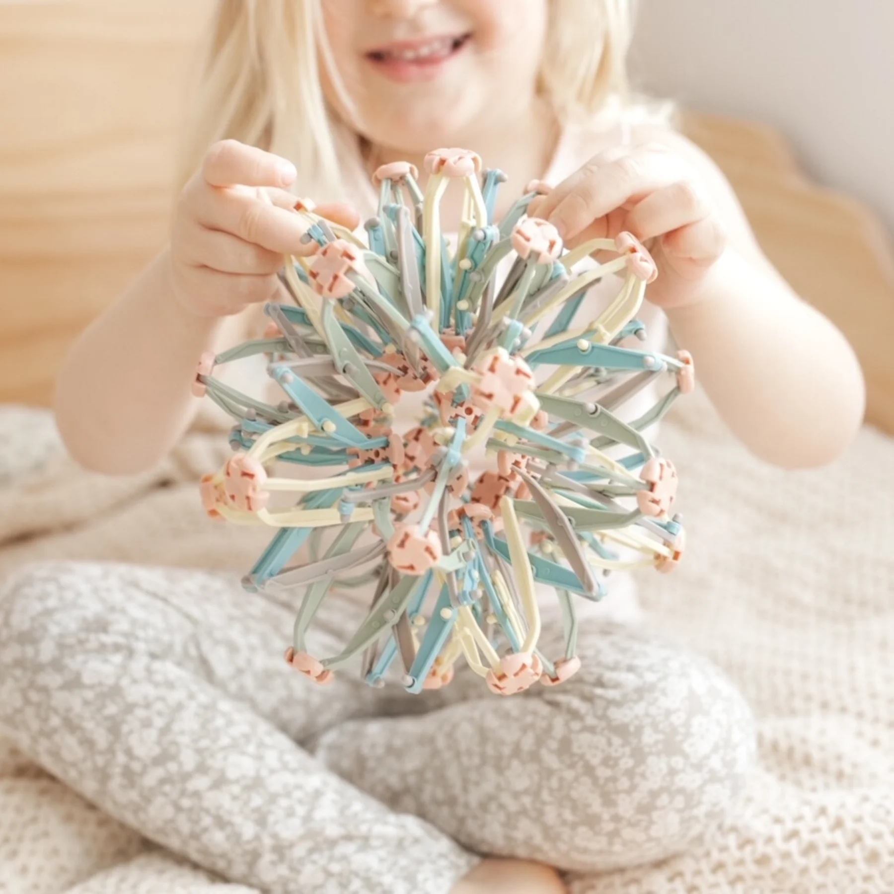 La balle est conçue avec une palette de couleurs apaisantes qui invite à la détente. Elle est facile à manipuler et parfaitement adaptée aux enfants à partir de 3 ans, que ce soit à la maison, en classe ou dans un espace de jeu sensoriel.