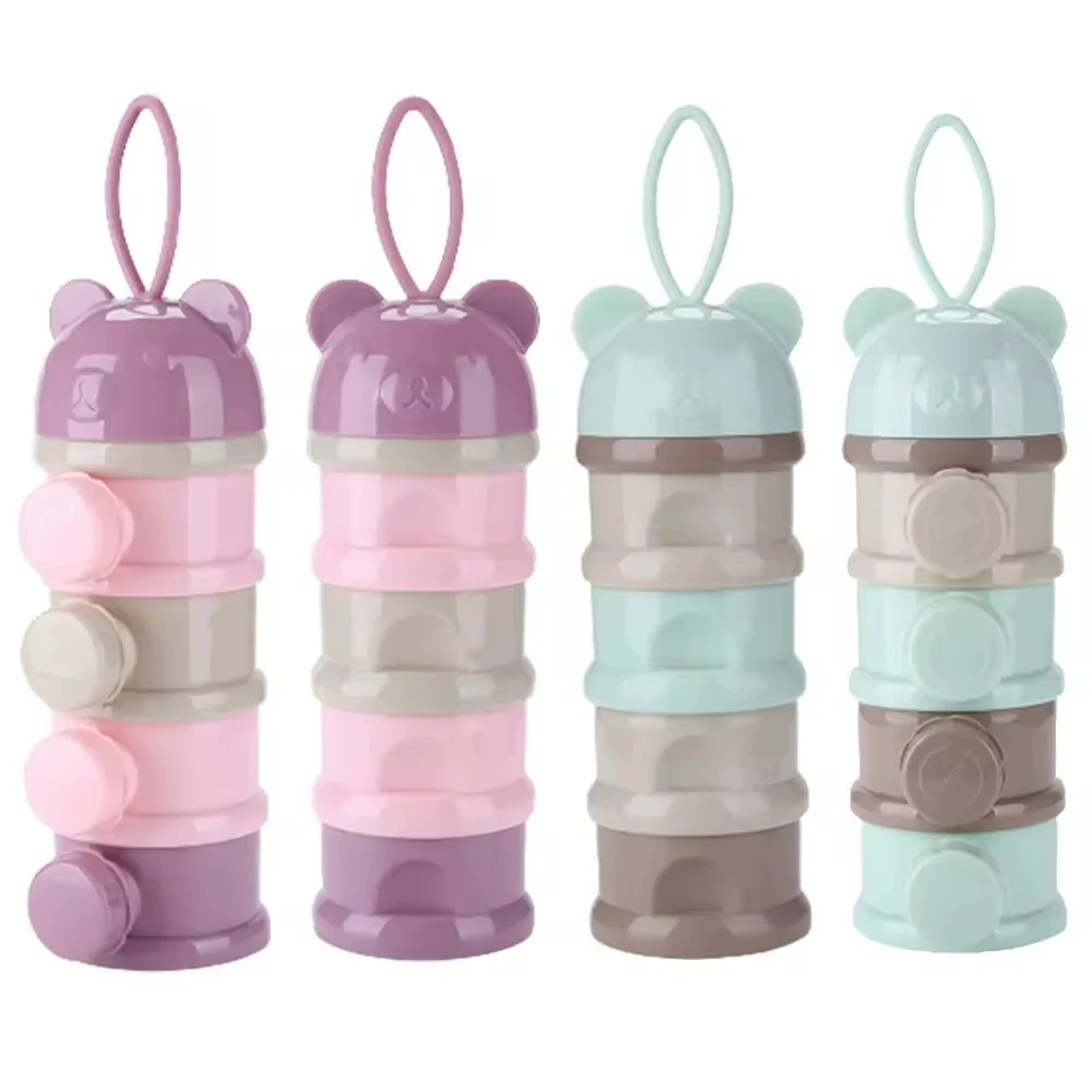 *Boîte Doseuse de Lait en Poudre Bébé – 4 Compartiments Empilables | Design Ours