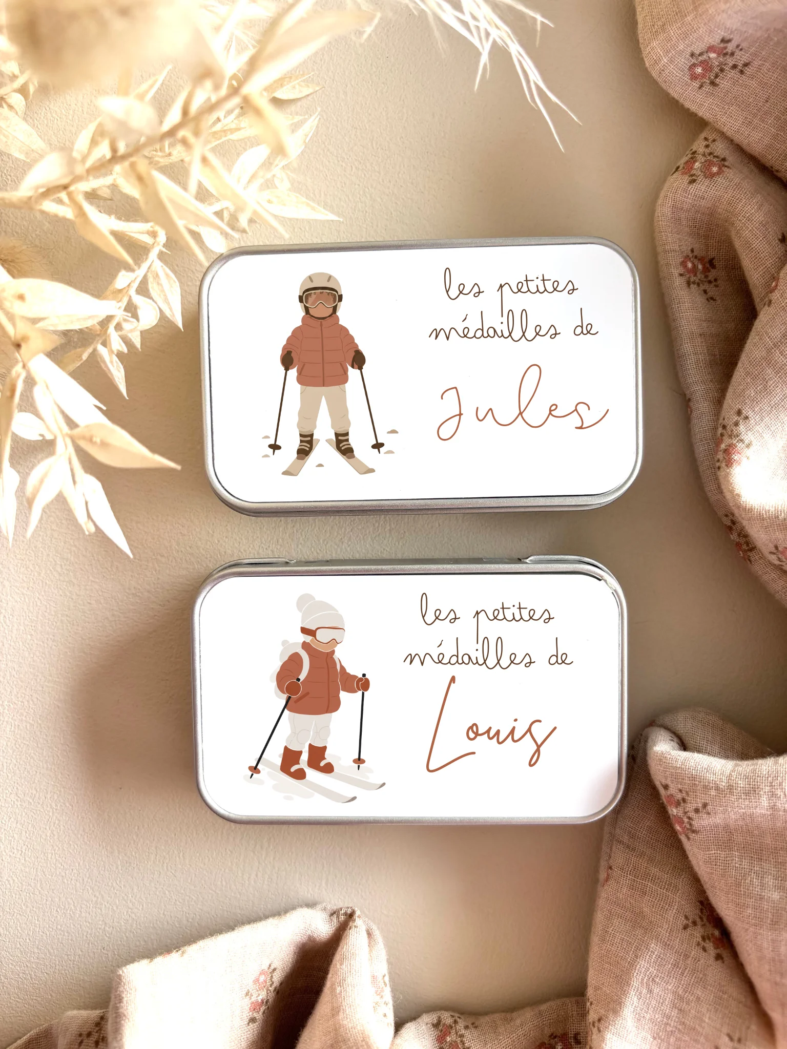 Boîte personnalisée pour médailles de ski enfant