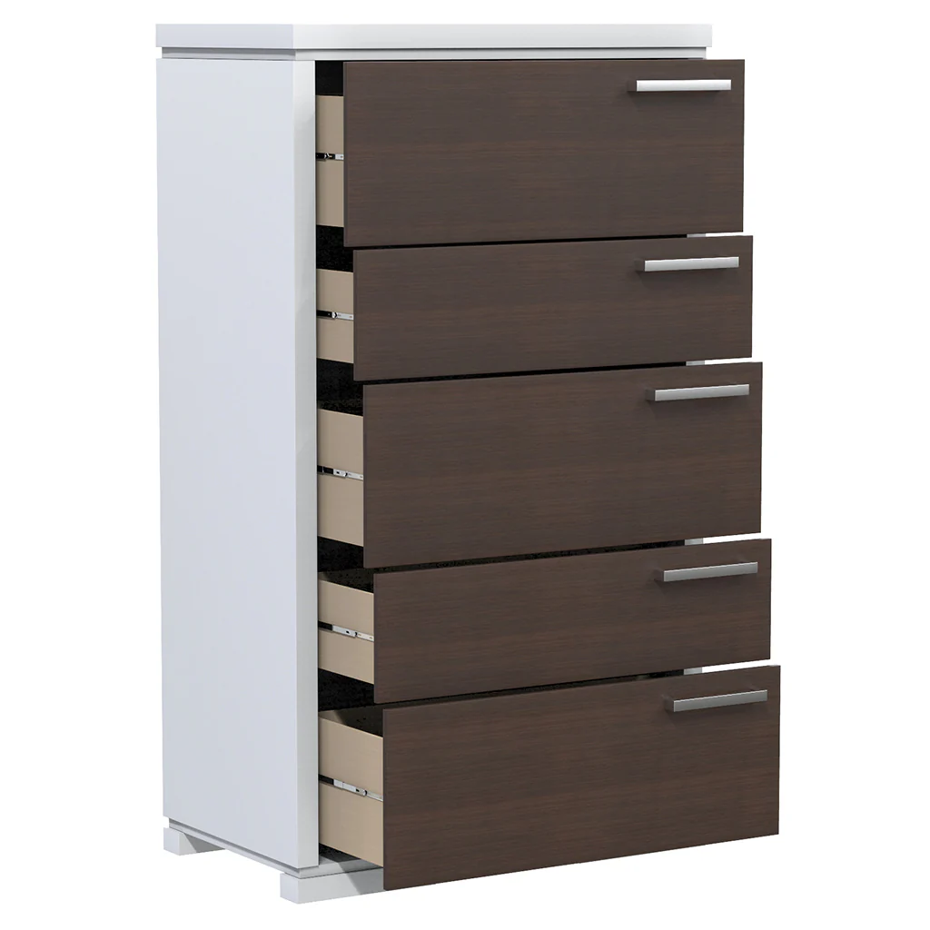 Barton commode de rangement 5 tiroirs pour chambre, java & blanc