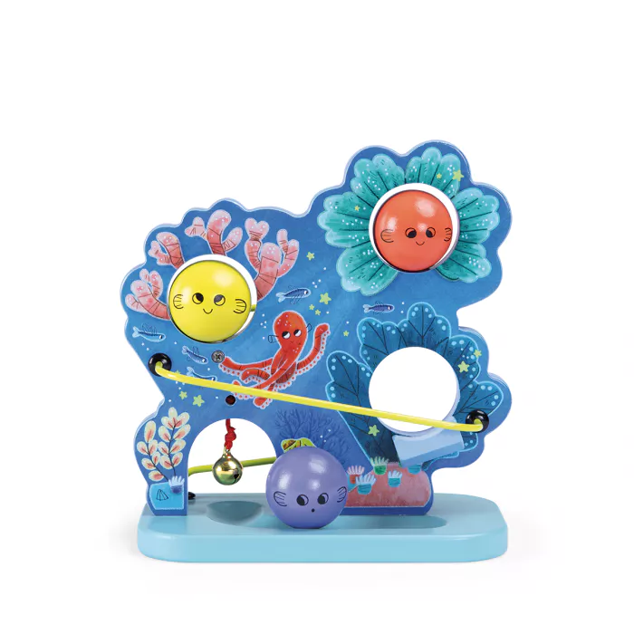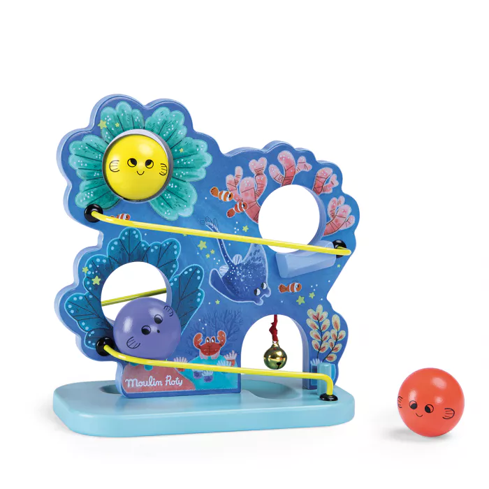 Bébé va adorer faire dévaler les boules à l’effigie de petits poissons qui feront tinter la clochette à l’arrivée.