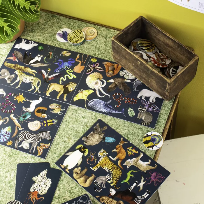 Il est fabriqué en carton durable, fabriqué en France, ce qui assure la qualité et la solidité. Ce jeu développe l’attention, la concentration et la rapidité visuelle. Il stimule aussi la curiosité sur la biodiversité et les animaux du monde. C’est un jeu parfait pour partager un moment en famille ou entre amis.