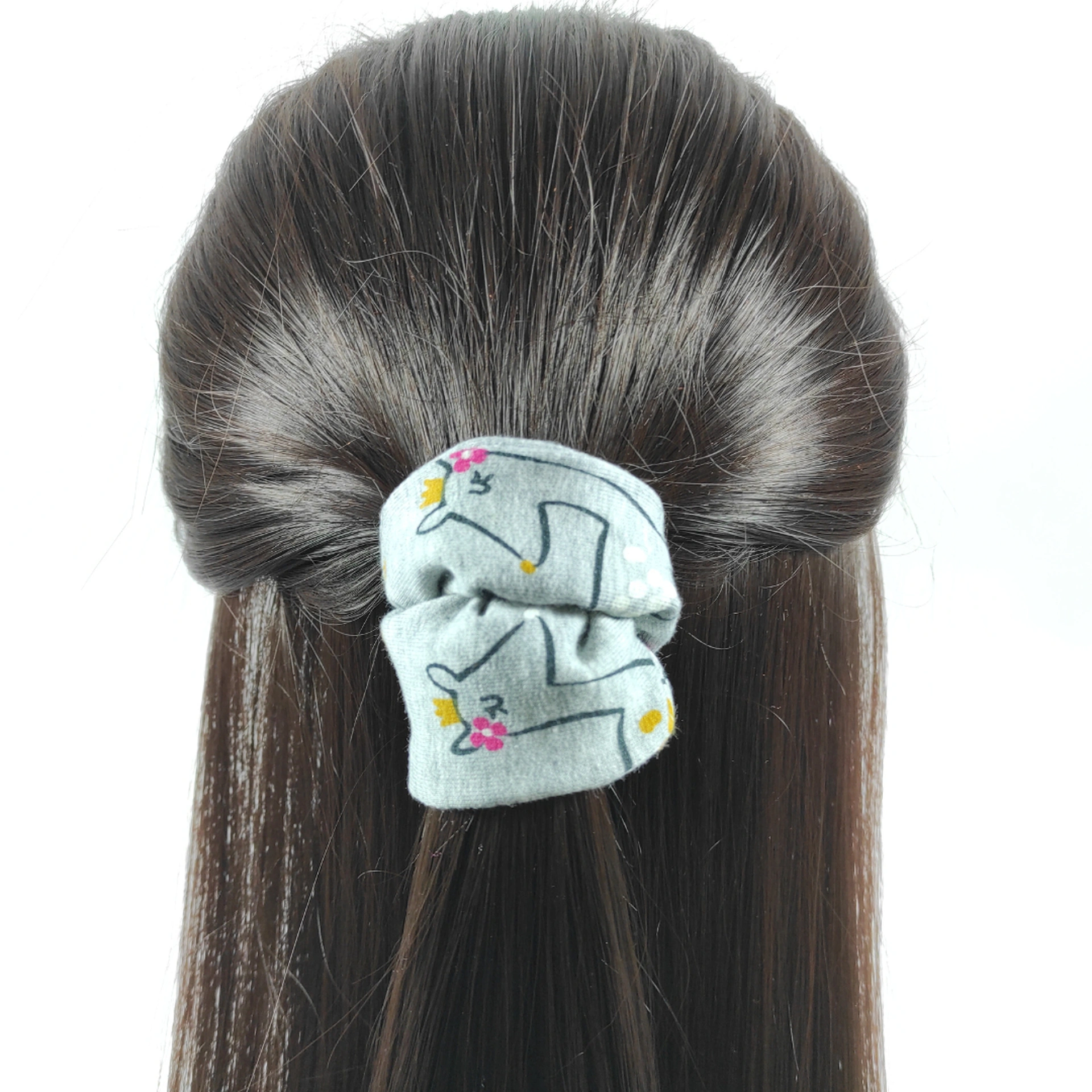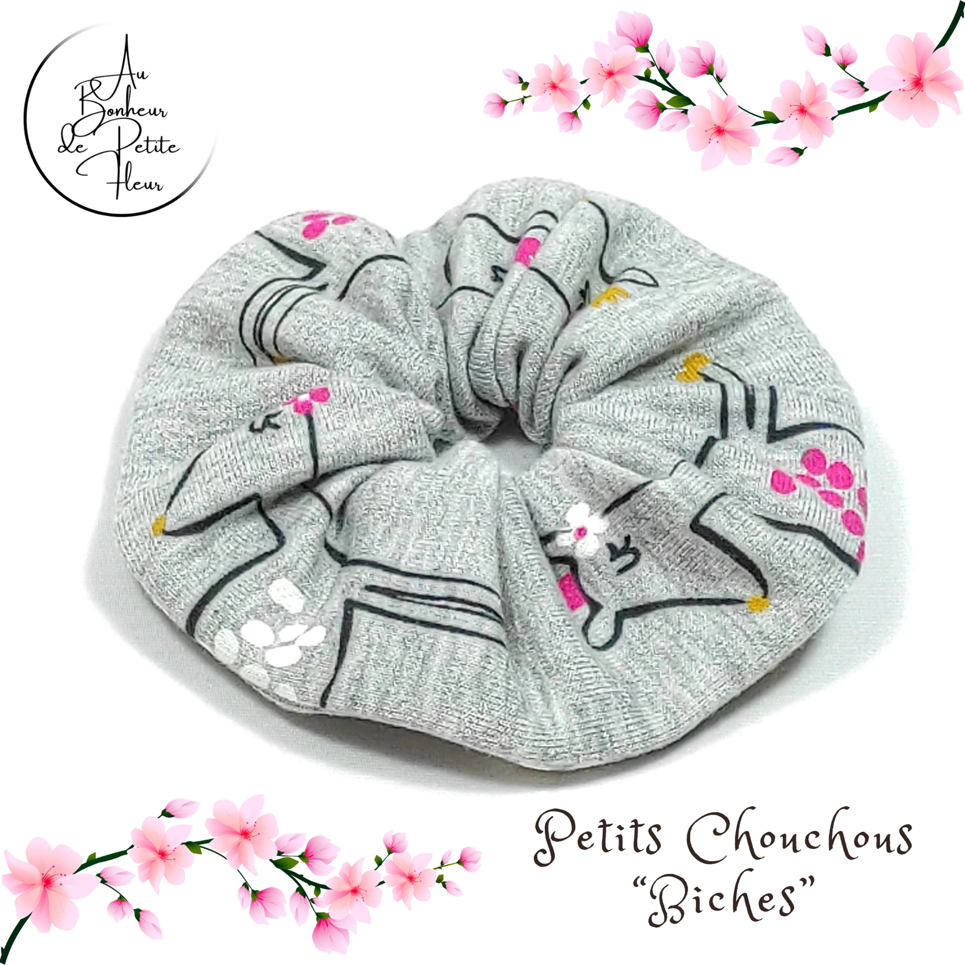 Le petit chouchou cheveux élastique pour enfant, gris, rose et noir, est réalisé dans un jersey de coton imprimé de Biches. Ce chouchou Biches fera merveille dans les cheveux ou en accessoire de poignet pour votre fille !!! L’élastique s’étend jusqu’à 11 cm environ permettant une torsion de 2/3 tours. Le diamètre approximatif est de 9,5 cm environ. La finition est faite au point invisible.