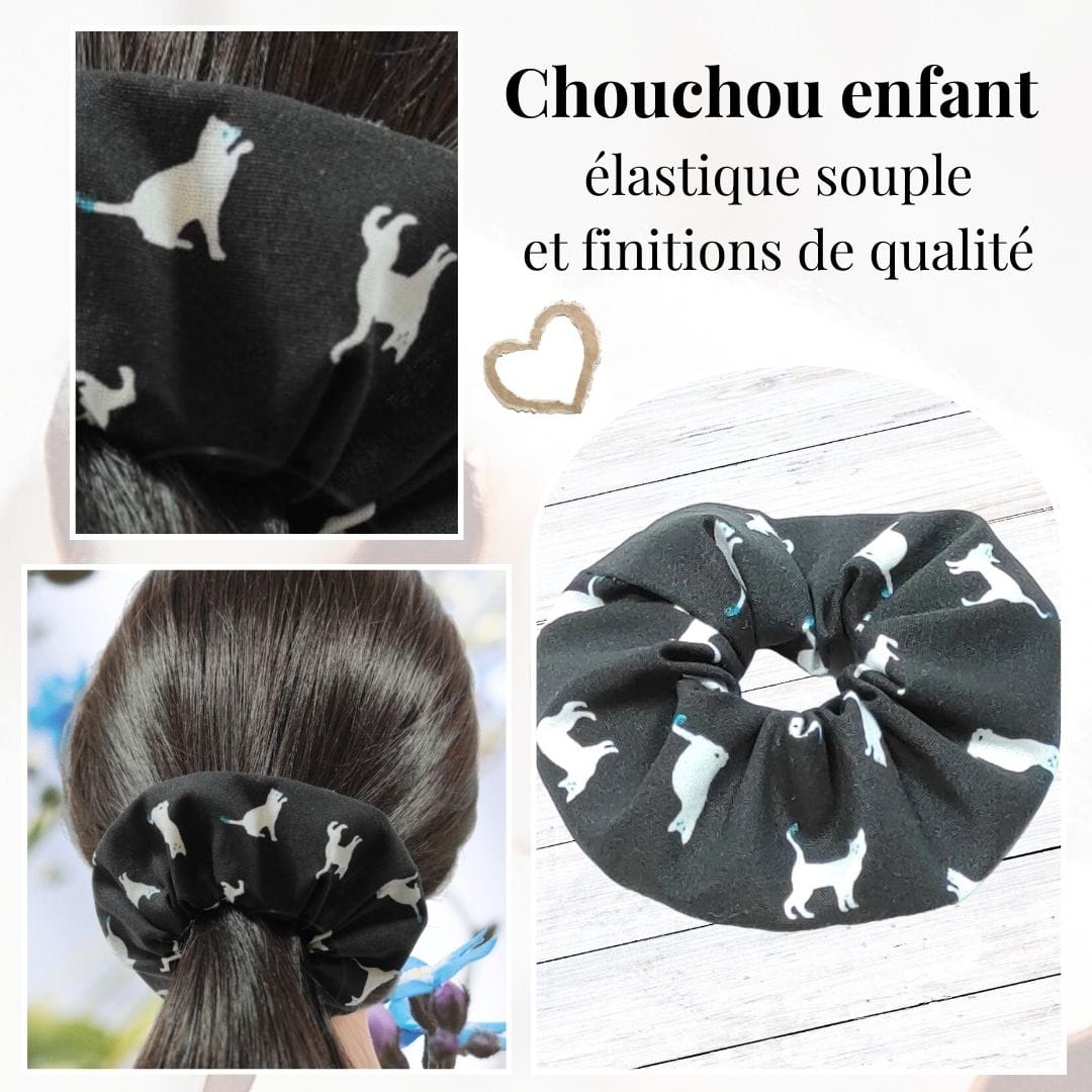 Chouchou enfant noir chats : un accessoire cheveux doux et artisanal