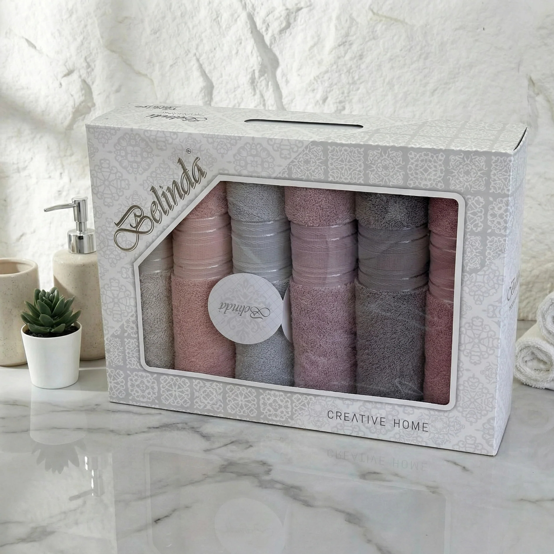 Découvrez le coffret exclusif de 6 serviettes de bain (90×50 cm) de la marque BELINDA, reconnu pour sa qualité premium en coton épais et ultra-doux. Son packaging moderne et raffiné en fait un choix idéal pour offrir en cadeau.