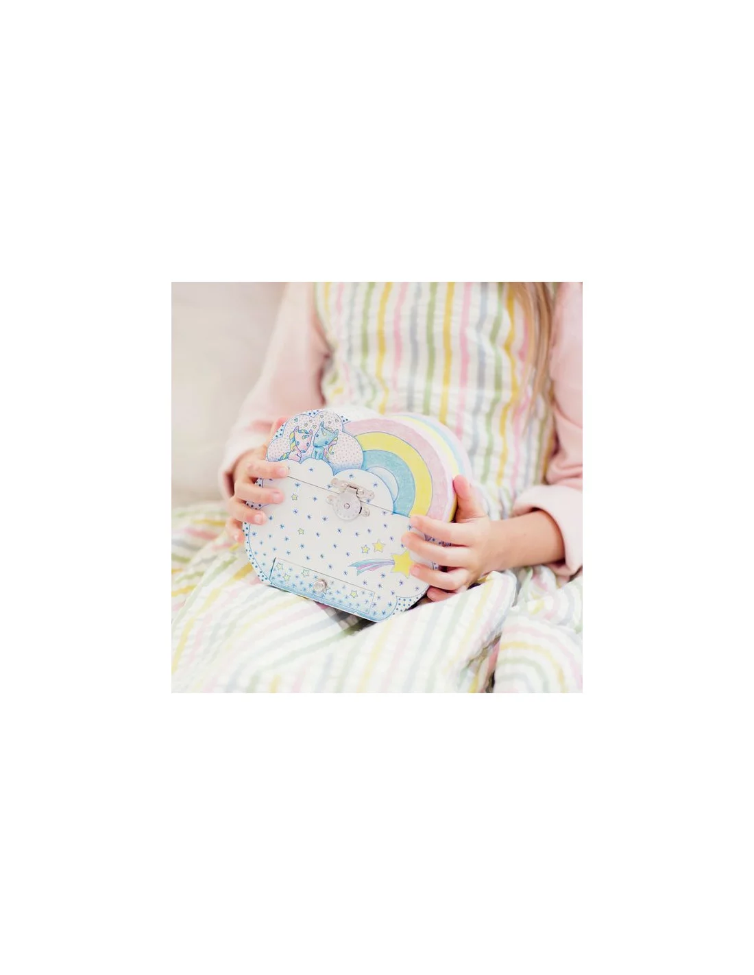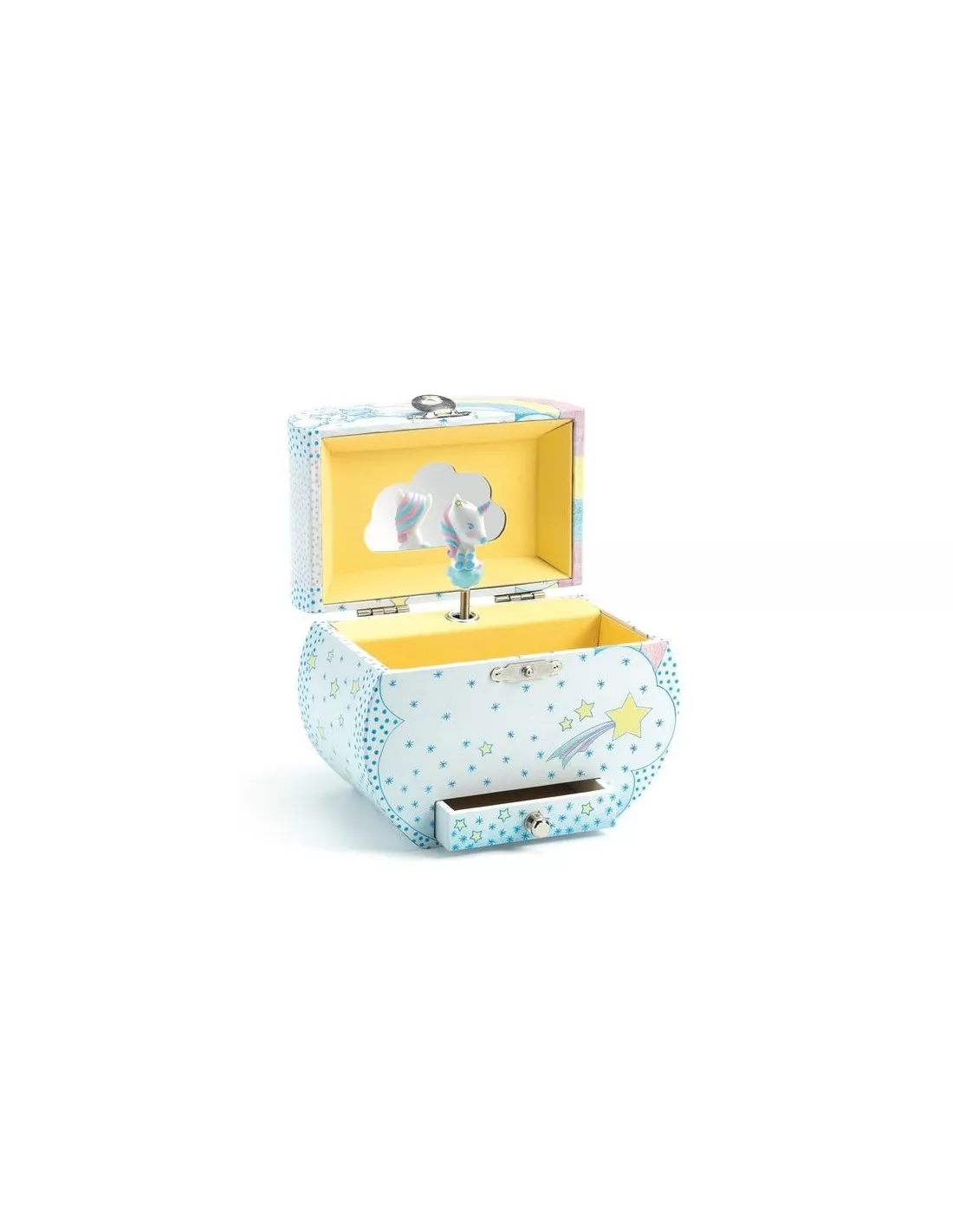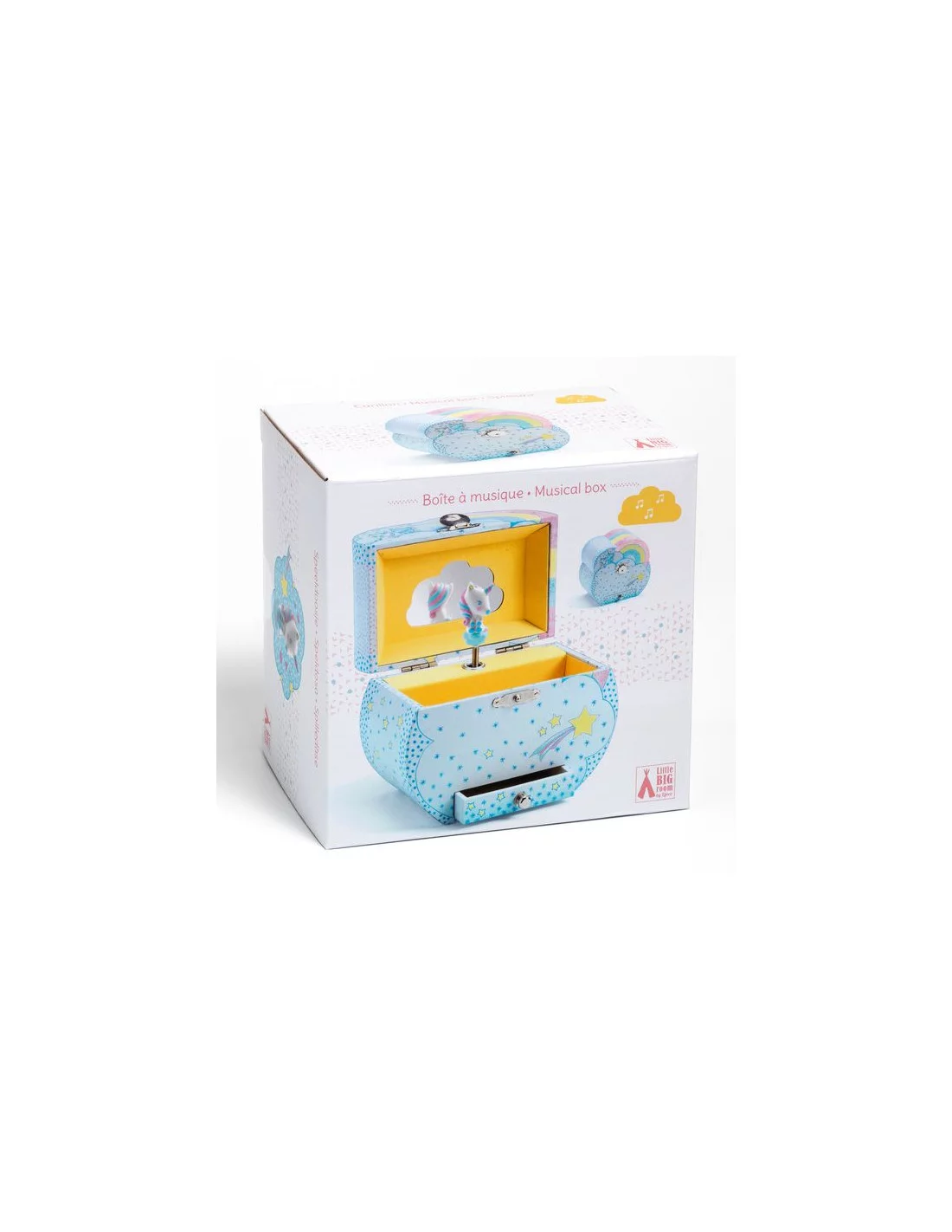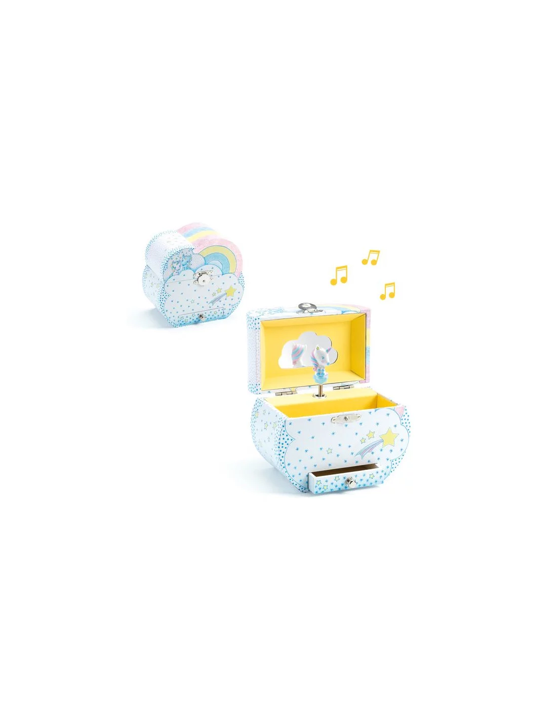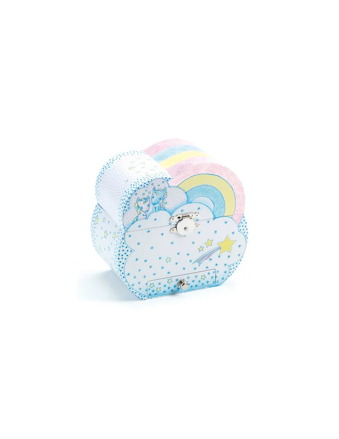 Une jolie boite à bijoux musicale en forme de nuage qui plaira beaucoup aux enfants fans de licornes. La boite est composée d’un grand compartiment pour ranger tous ses trésors et un tiroir pour ses secrets. L’intérieur de la boite est tapissé d’un velours très doux.