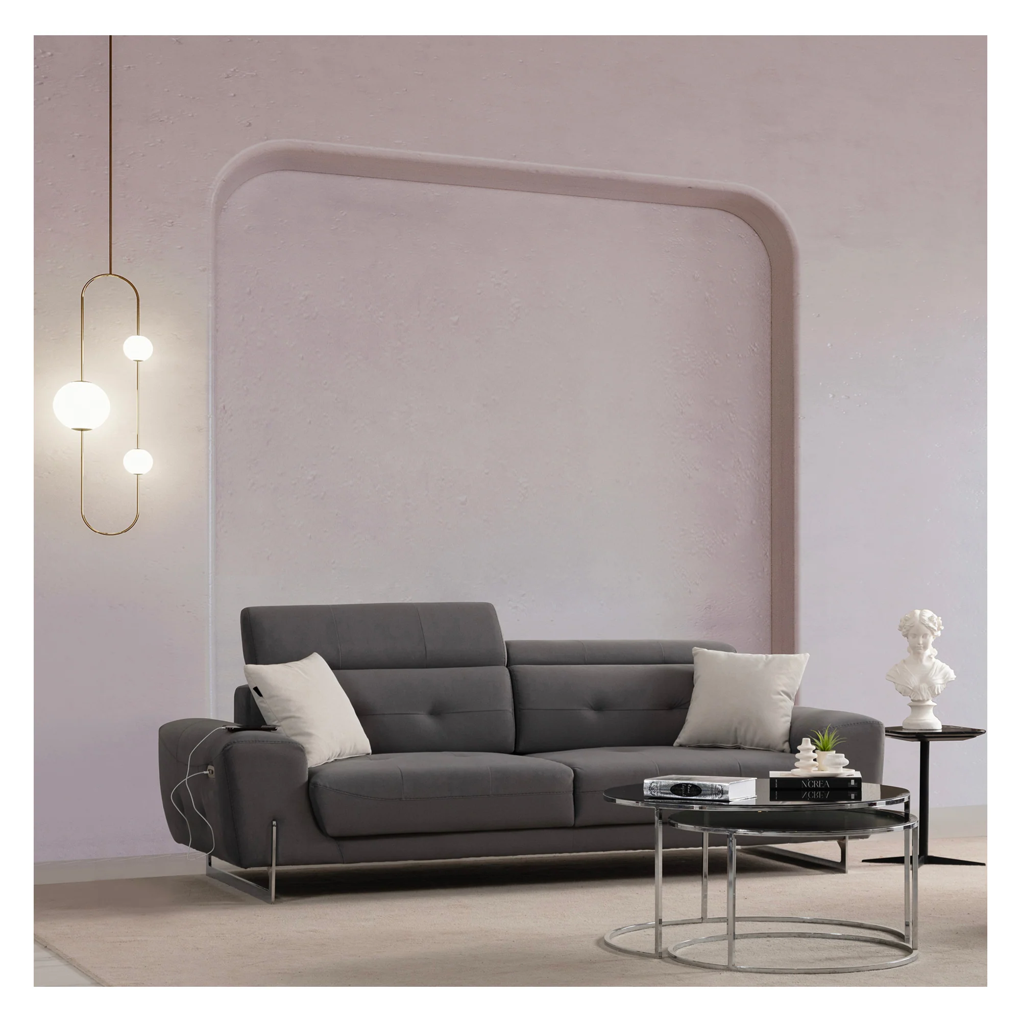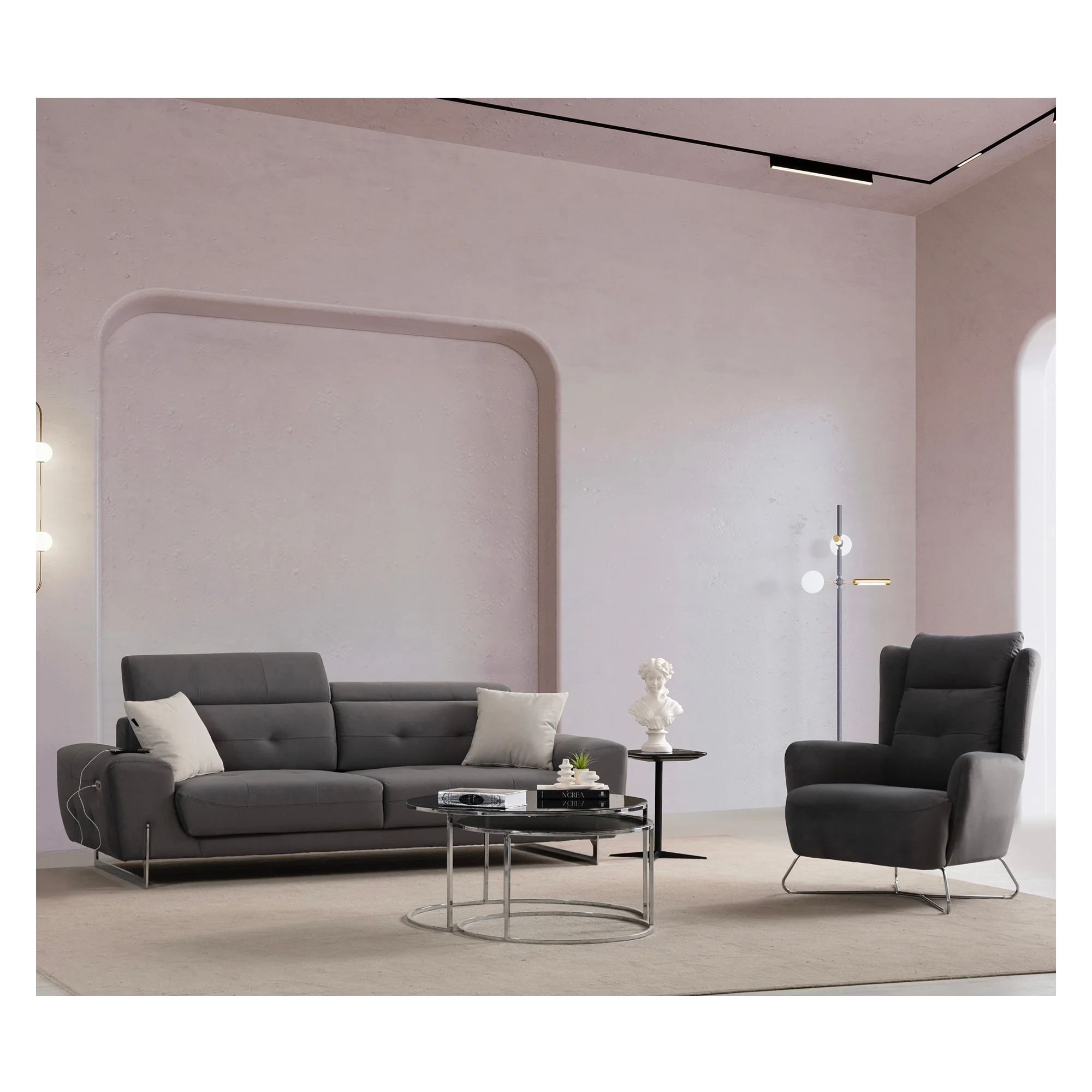 Chaque modèle est fabriqué avec une structure en bois massif, une mousse haute densité et des ressorts internes avec sangles (webbing), garantissant une assise confortable et durable. Le tissu premium, disponible en plusieurs couleurs et textures, permet une personnalisation complète.