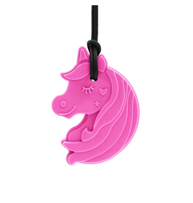 La licorne se fixe à un cordon noir discret, réglable et doté d’un fermoir de sécurité qui s’ouvre en cas de traction. Idéal pour une utilisation sans risque. Ce collier aide à canaliser l’anxiété, améliorer la concentration. Il permet de réduire les comportements oraux inappropriés comme mordiller les manches, les stylos ou les doigts.