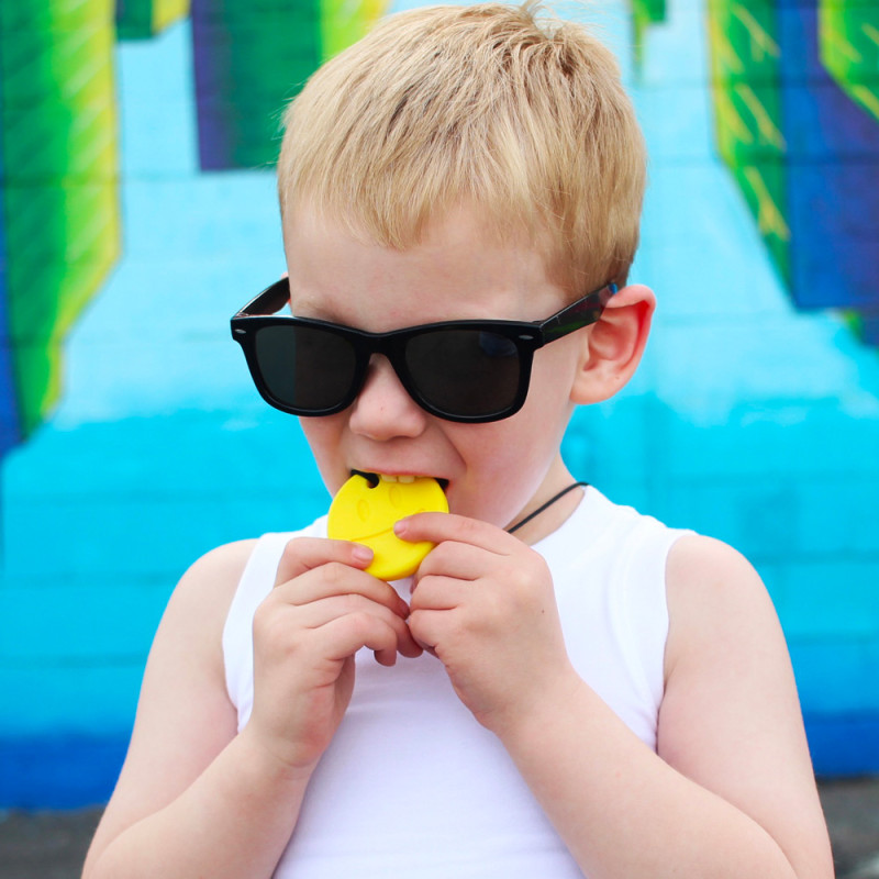 Le collier Smiley Face de ARK ne manquera pas de vous faire sourire ! Le pendentif double face présente un smiley au grand sourire d’un côté (en creux) et un smiley aux lunettes de soleil de l’autre côté (en relief) pour un intérêt visuel et tactile différent. C’est une excellente option pour ceux qui préfèrent mâcher avec leurs prémolaires et/ou leurs dents de devant. Cette solution sensorielle orale est une alternative sûre à la mastication de crayons, de chemises, etc. et aide l’enfant à se calmer, à se concentrer et à s’autoréguler. Hautement recommandé pour les personnes ayant un trouble…