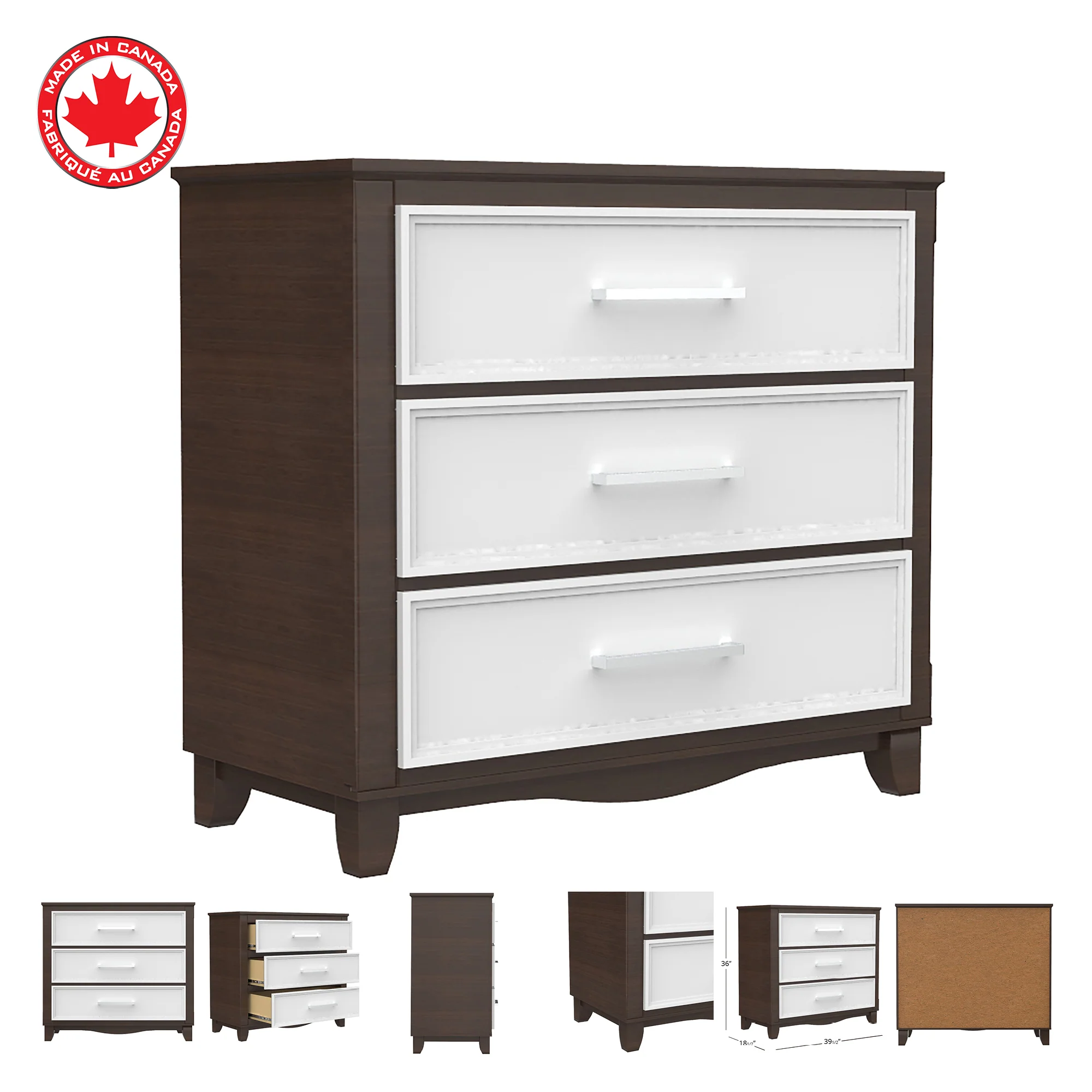 Rangement et organisation pratiques avec 3 grands tiroirs avec poignées droites en métal, ce coffre de rangement à 3 tiroirs offre beaucoup d’espace pour les vêtements ou le linge de maison, ou même les couches de votre bébé. Comprend des glissières de tiroir en métal pour une utilisation fluide et silencieuse.