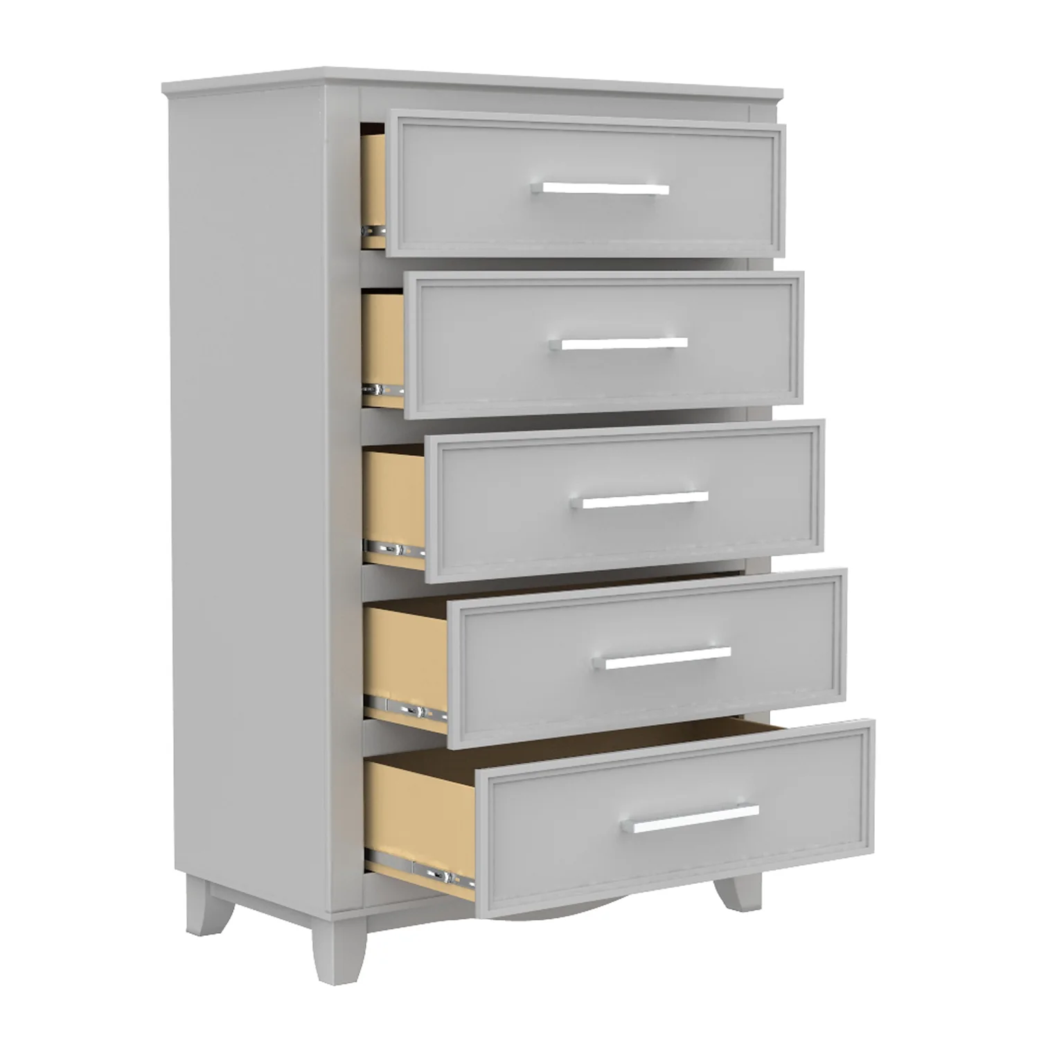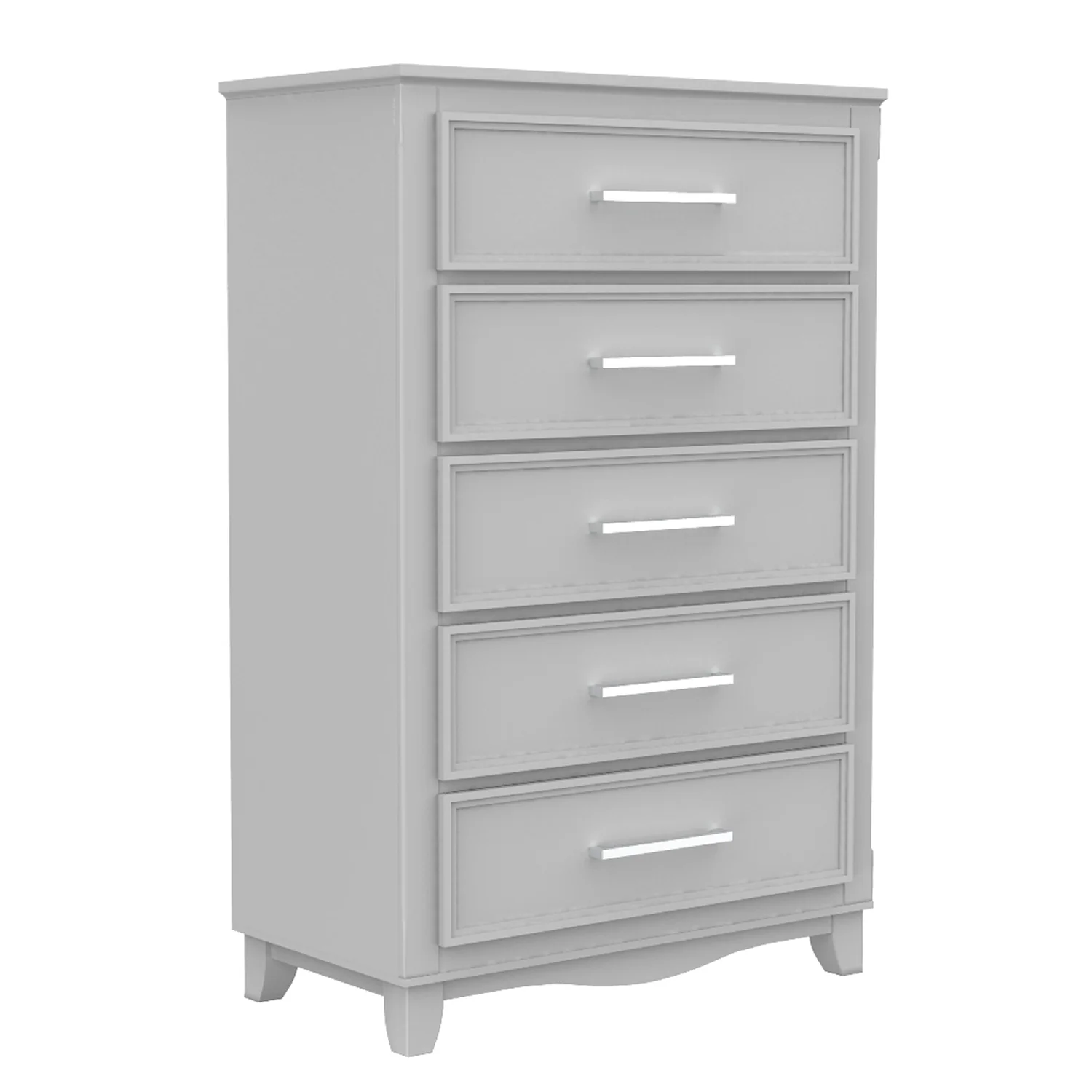 Commode 5 tiroirs bella pour chambre, gris clair