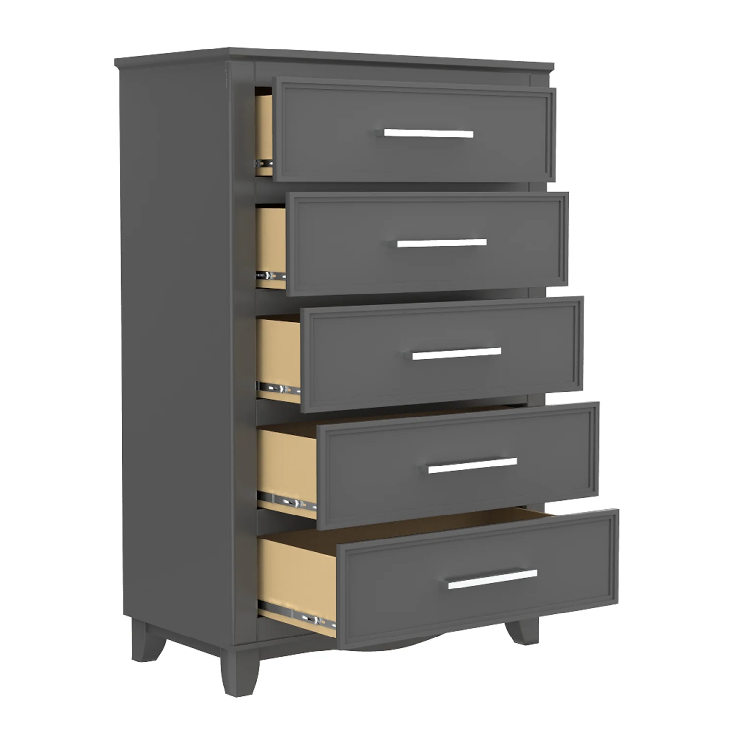Rangement et organisation pratiques avec 5 grands tiroirs avec poignées droites en métal, ce coffre de rangement à 5 tiroirs offre beaucoup d’espace pour les vêtements ou le linge de maison, ou même les couches de votre bébé. Comprend des glissières de tiroir en métal pour une utilisation fluide et silencieuse.