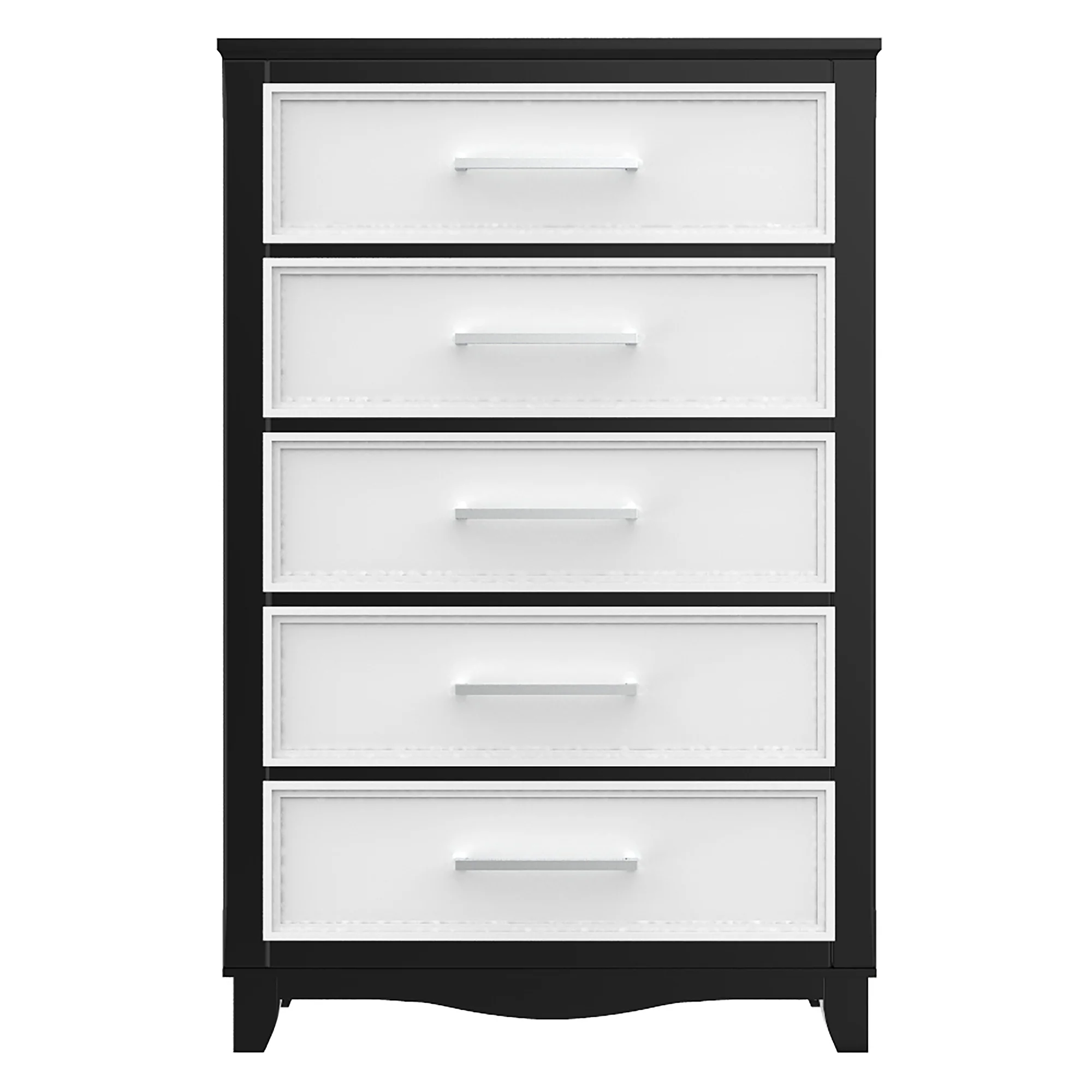 Rangement et organisation pratiques avec 5 grands tiroirs avec poignées droites en métal, ce coffre de rangement à 5 tiroirs offre beaucoup d’espace pour les vêtements ou le linge de maison, ou même les couches de votre bébé. Comprend des glissières de tiroir en métal pour une utilisation fluide et silencieuse.