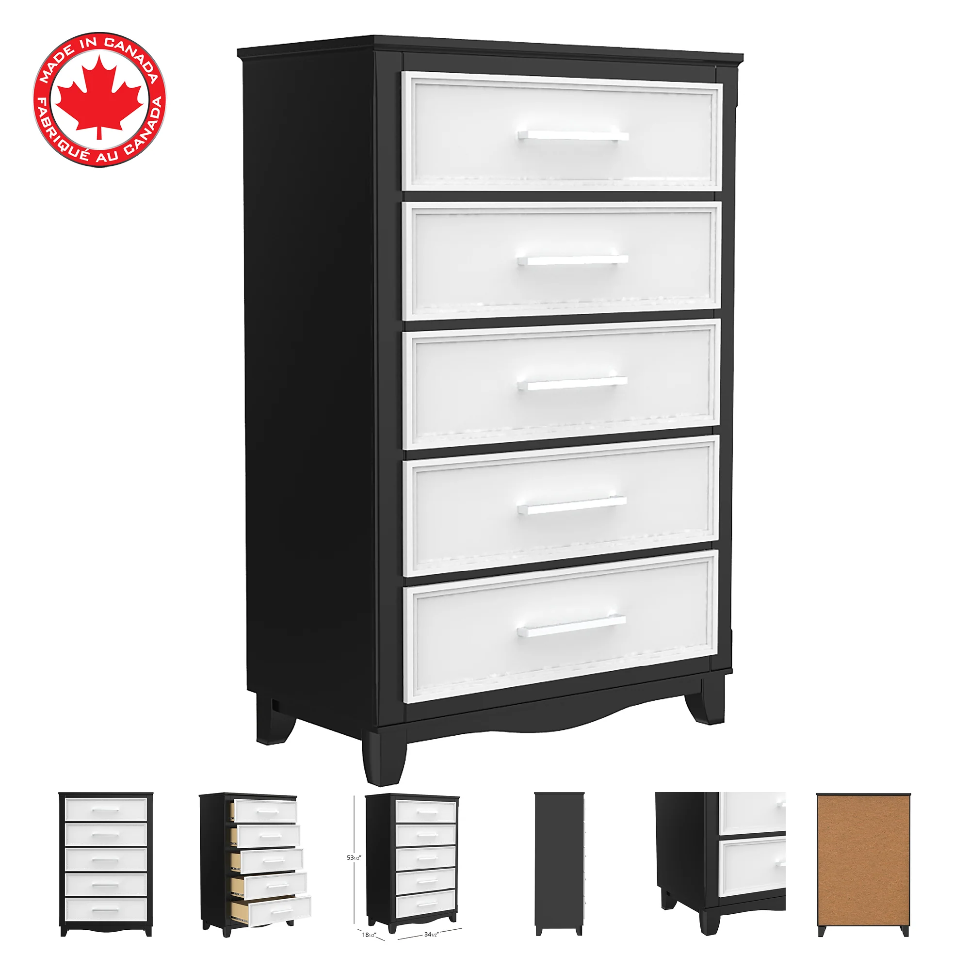 • La commode a 5 tiroirs profonds