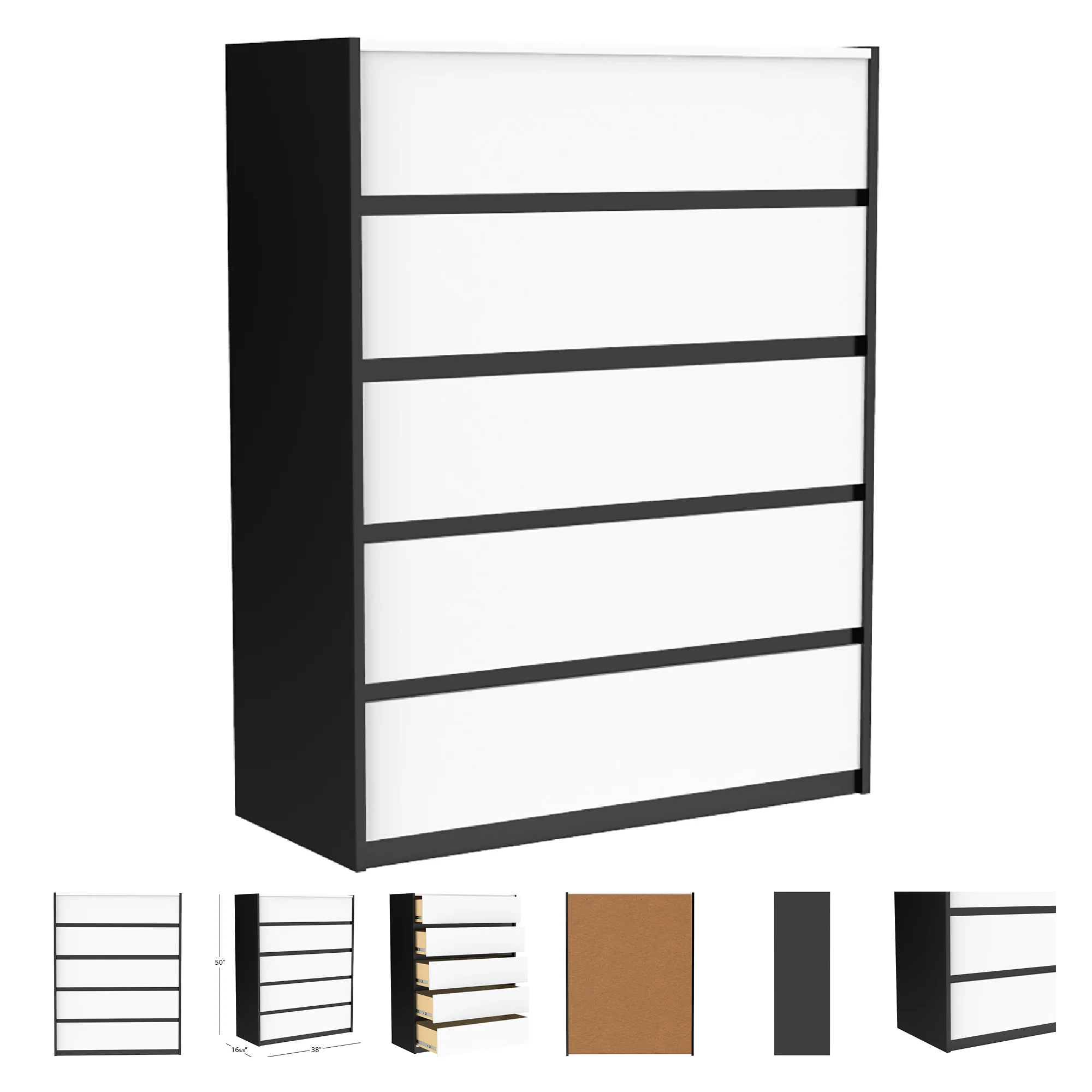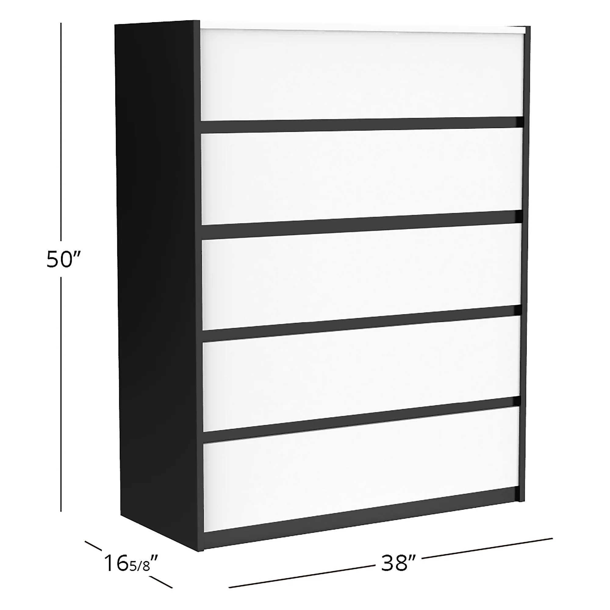 Rangement et organisation pratiques avec 5 grands tiroirs avec poignées droites en métal, ce coffre de rangement à 5 tiroirs offre beaucoup d’espace pour les vêtements ou le linge de maison, ou même les couches de votre bébé. Comprend des glissières de tiroir en métal pour une utilisation fluide et silencieuse.