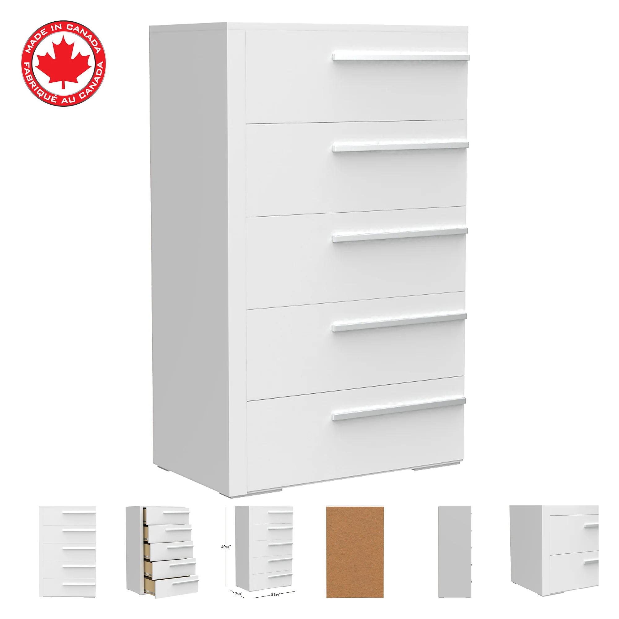 Rangement et organisation pratiques avec 5 grands tiroirs avec poignées droites en métal, ce coffre de rangement à 5 tiroirs offre beaucoup d’espace pour les vêtements ou le linge de maison, ou même les couches de votre bébé. Comprend des glissières de tiroir en métal pour une utilisation fluide et silencieuse.