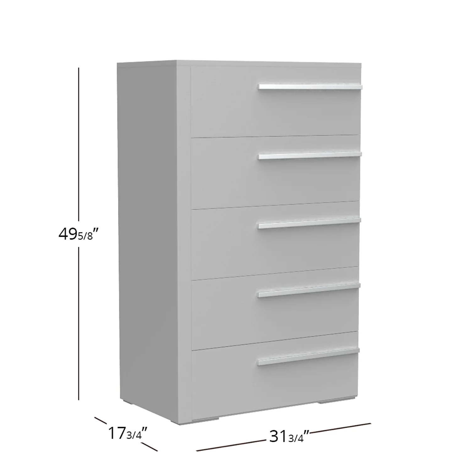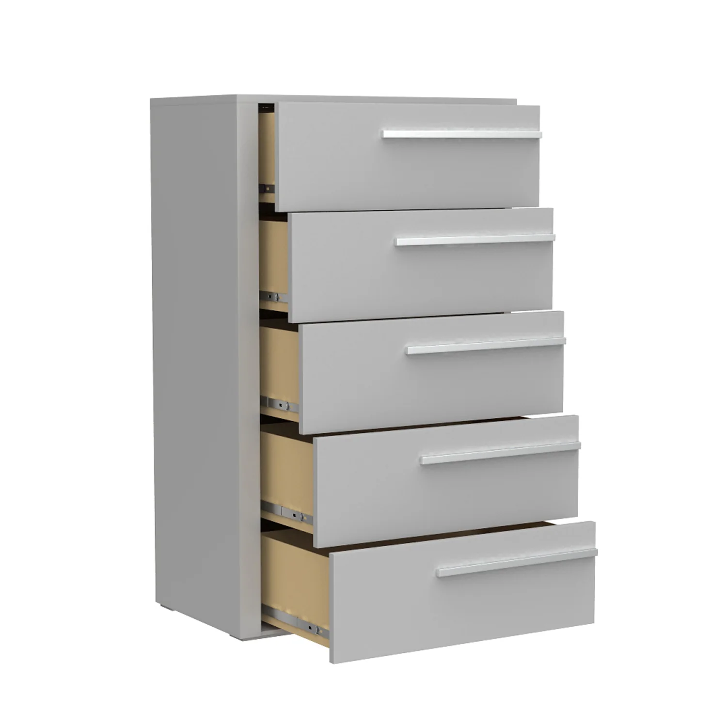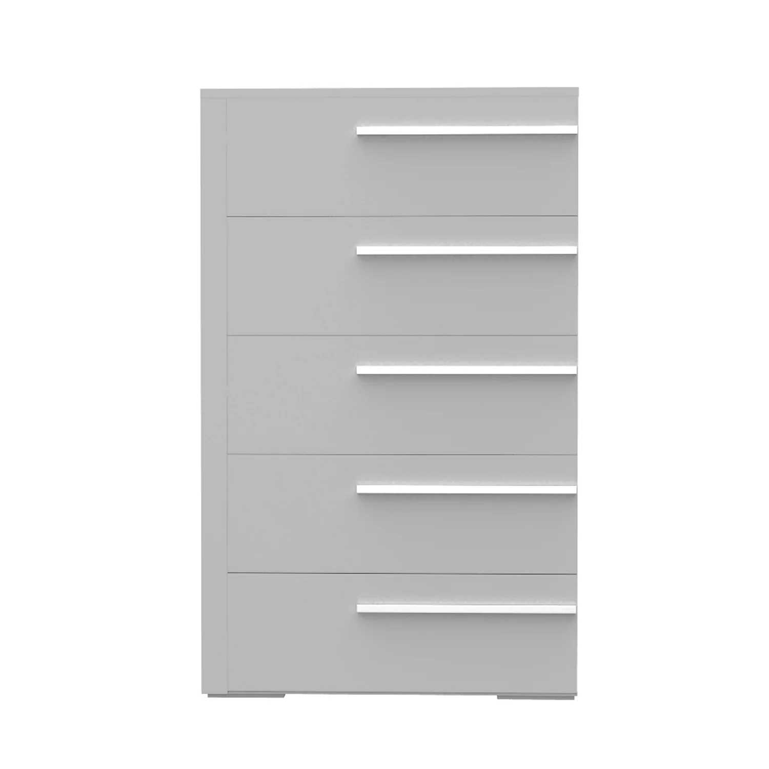 Commode 5 tiroirs gabriella pour chambre, gris clair