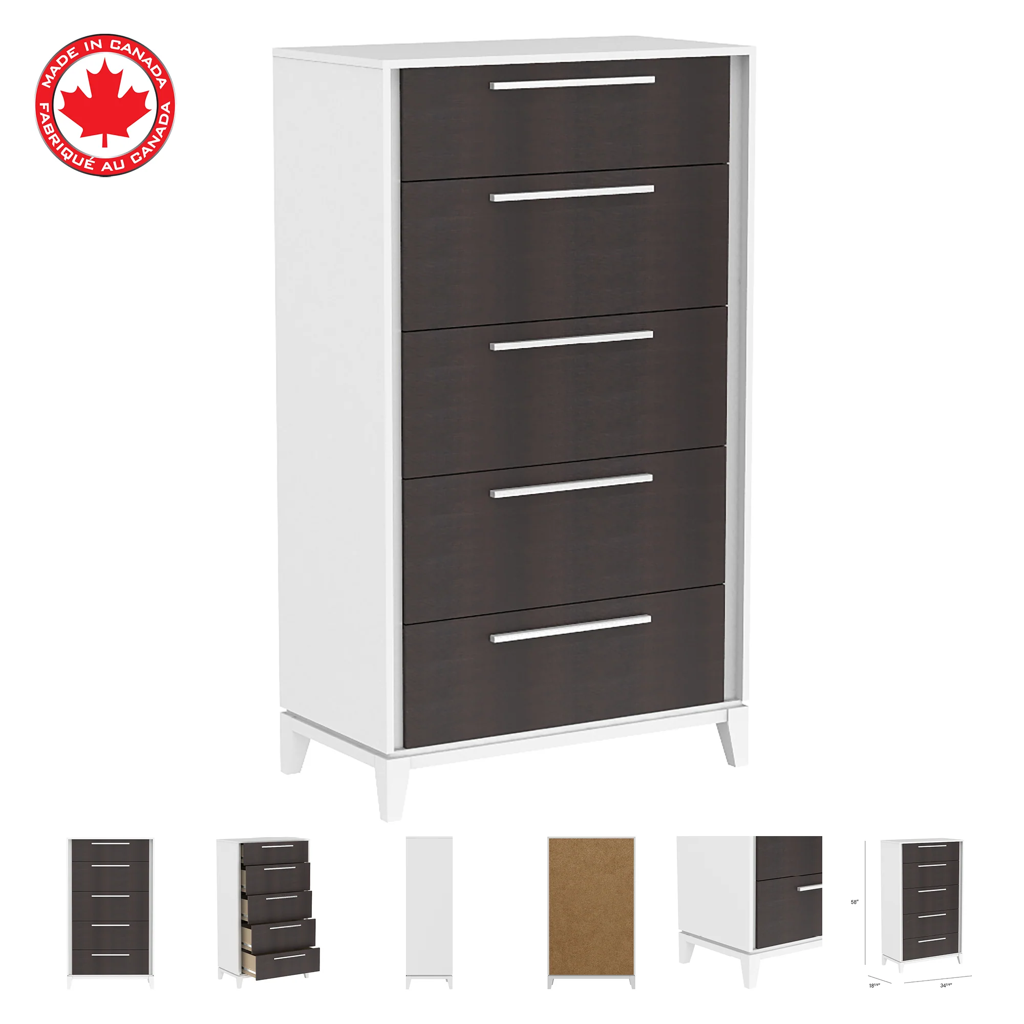Barton commode de rangement 5 tiroirs pour chambre, java & blanc