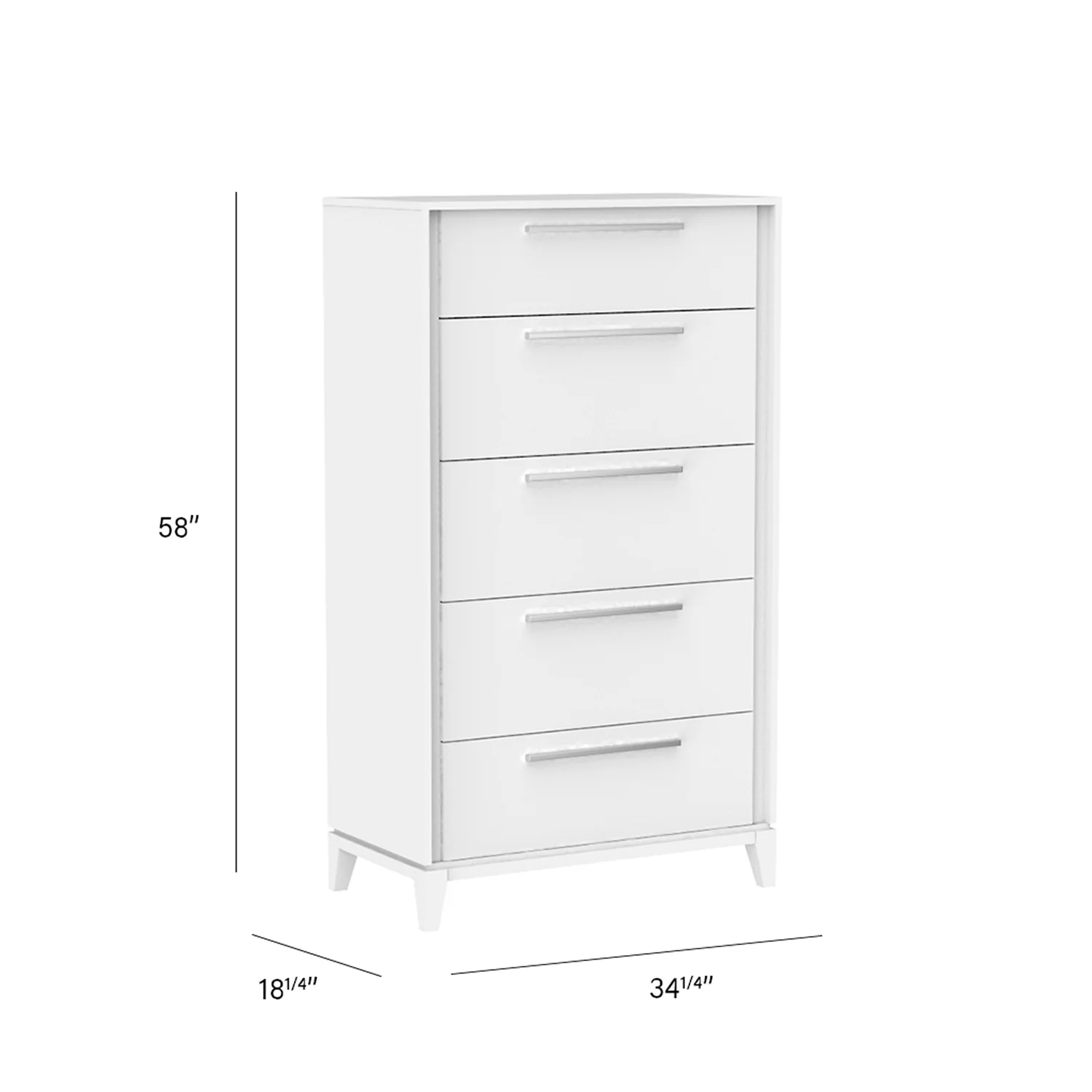 Rangement et organisation pratiques avec 5 grands tiroirs avec poignées droites en métal, ce coffre de rangement à 5 tiroirs offre beaucoup d’espace pour les vêtements ou le linge de maison, ou même les couches de votre bébé. Comprend des glissières de tiroir en métal pour une utilisation fluide et silencieuse.