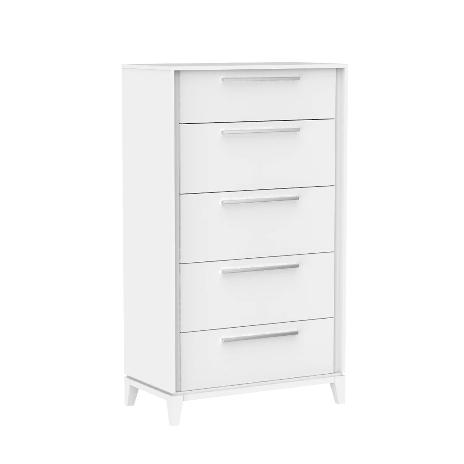 Commode 5 tiroirs moderna pour chambre, gris clair