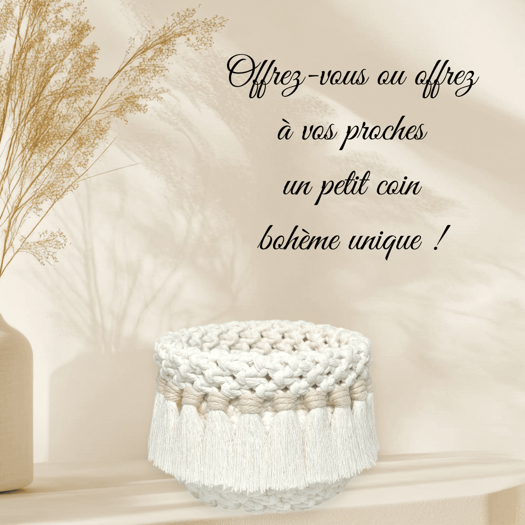 Ce produit combine le rangement macramé et la décoration bohème chic, pour ceux qui recherchent à la fois utilité et esthétique artisanale.