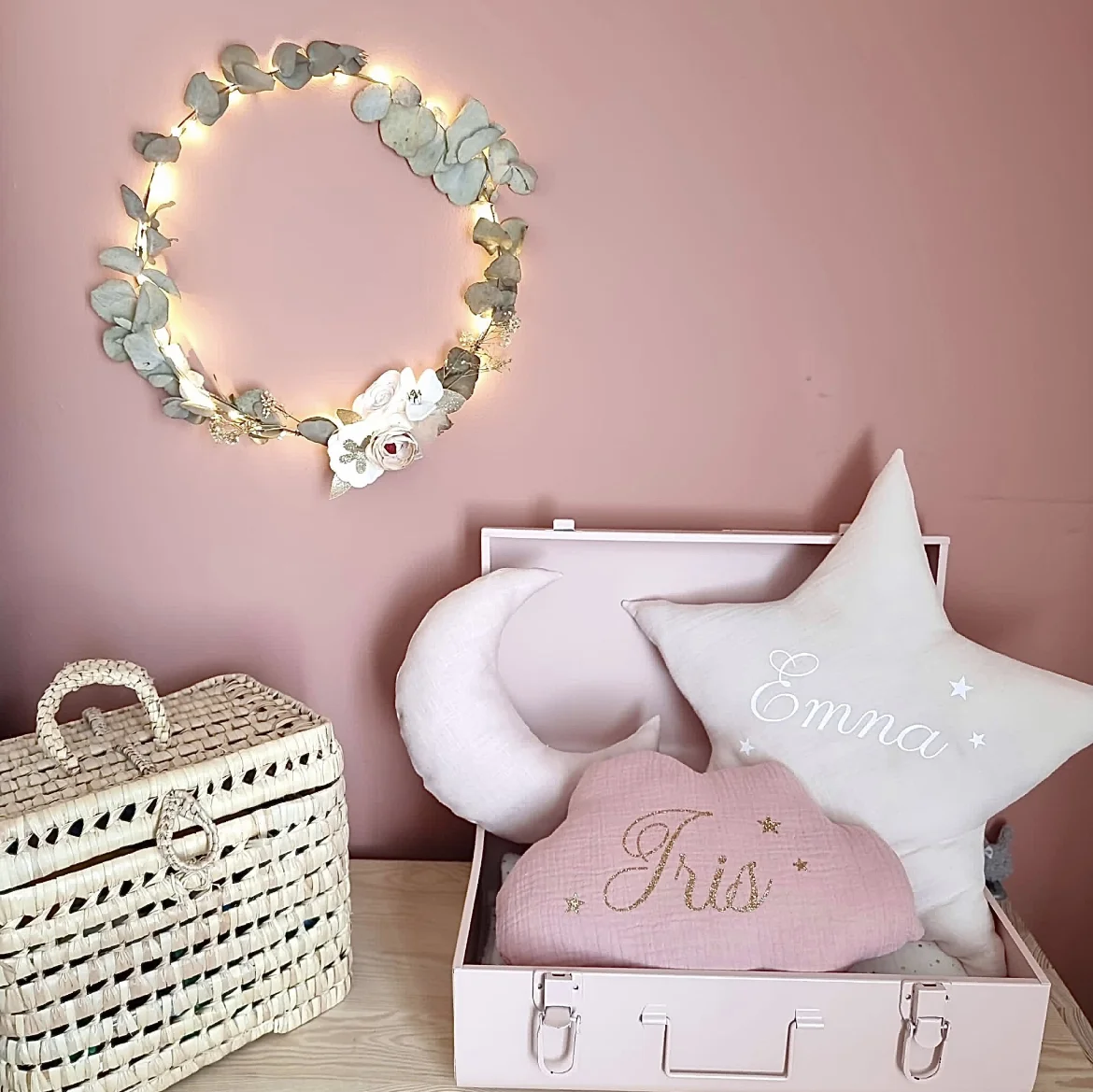 - N’hésitez pas à le marier aux autres formes de coussins disponibles sur la boutique comme les lunes ou les nuages par exemple. Mixez les différentes matières et coloris pour un mélange harmonieux et une décoration originale.