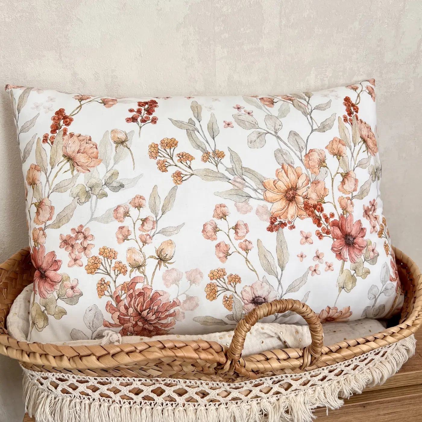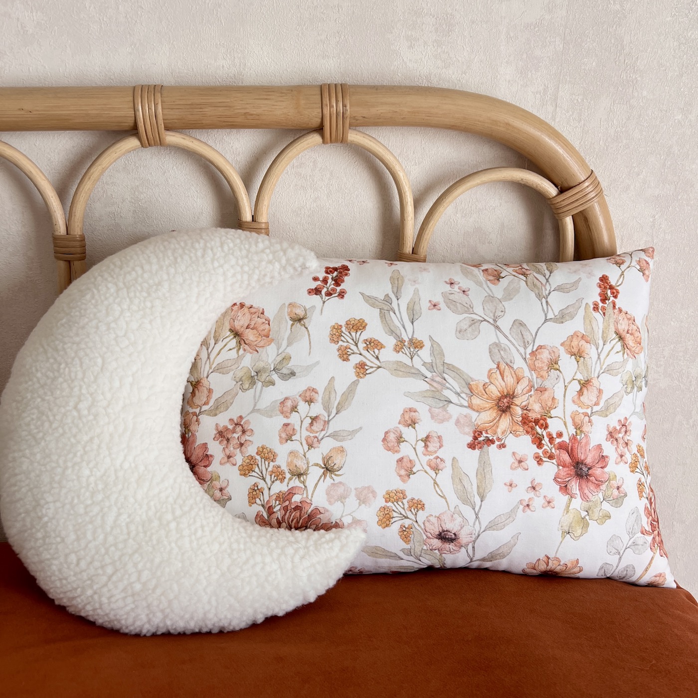 - Coussin rectangulaire en coton aux motifs délicats pour ajouter une touche de poésie dans une chambre d’enfant ou de bébé. A disposer sur un lit ou bien encore un fauteuil pour un ambiance chaleureuse.