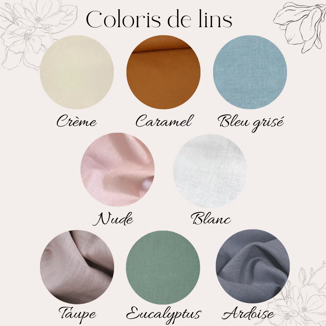 - Vous aimerez aussi le coté cocooning du lin, une matière naturelle tout en étant élégante. Choisissez parmi les différents coloris proposés.