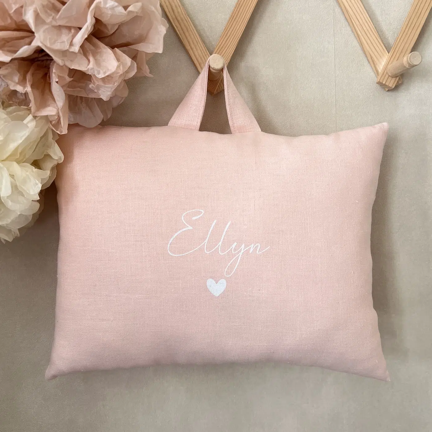 - Ce petit coussin est personnalisable en option avec le prénom de l’enfant et un petit motif (facultatif), idéal pour ne pas le perdre à l’école!