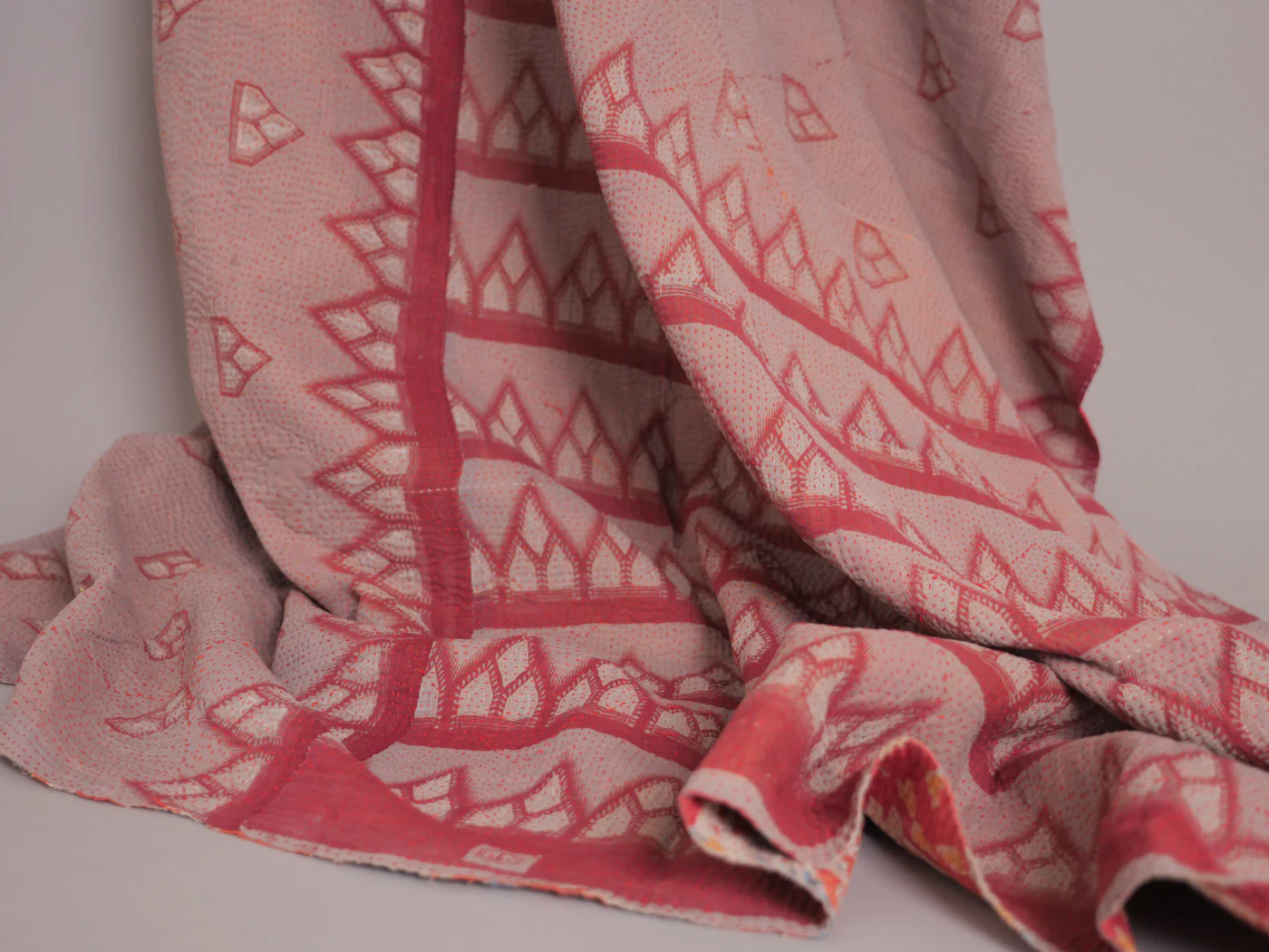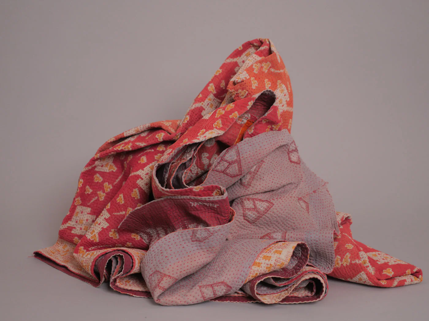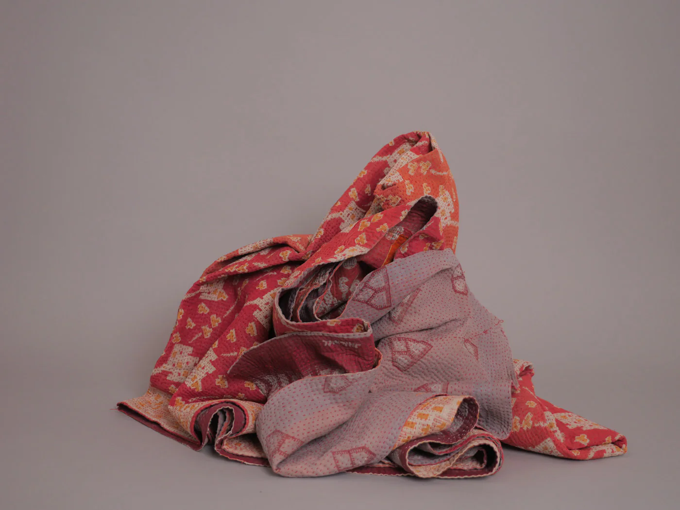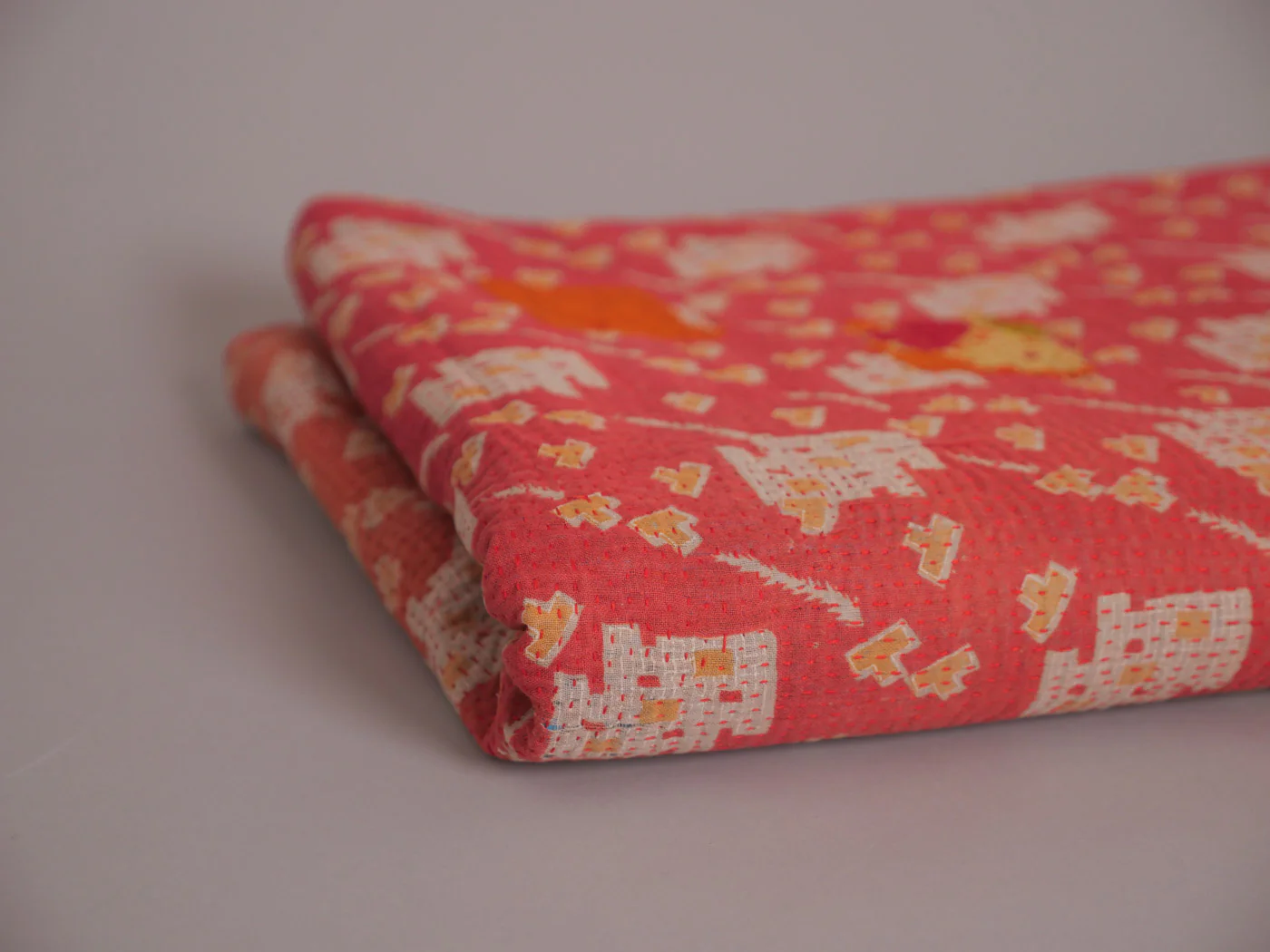 Couvre-lit Kantha Vintage en Coton Recyclé – Pièce Unique et Artisanale