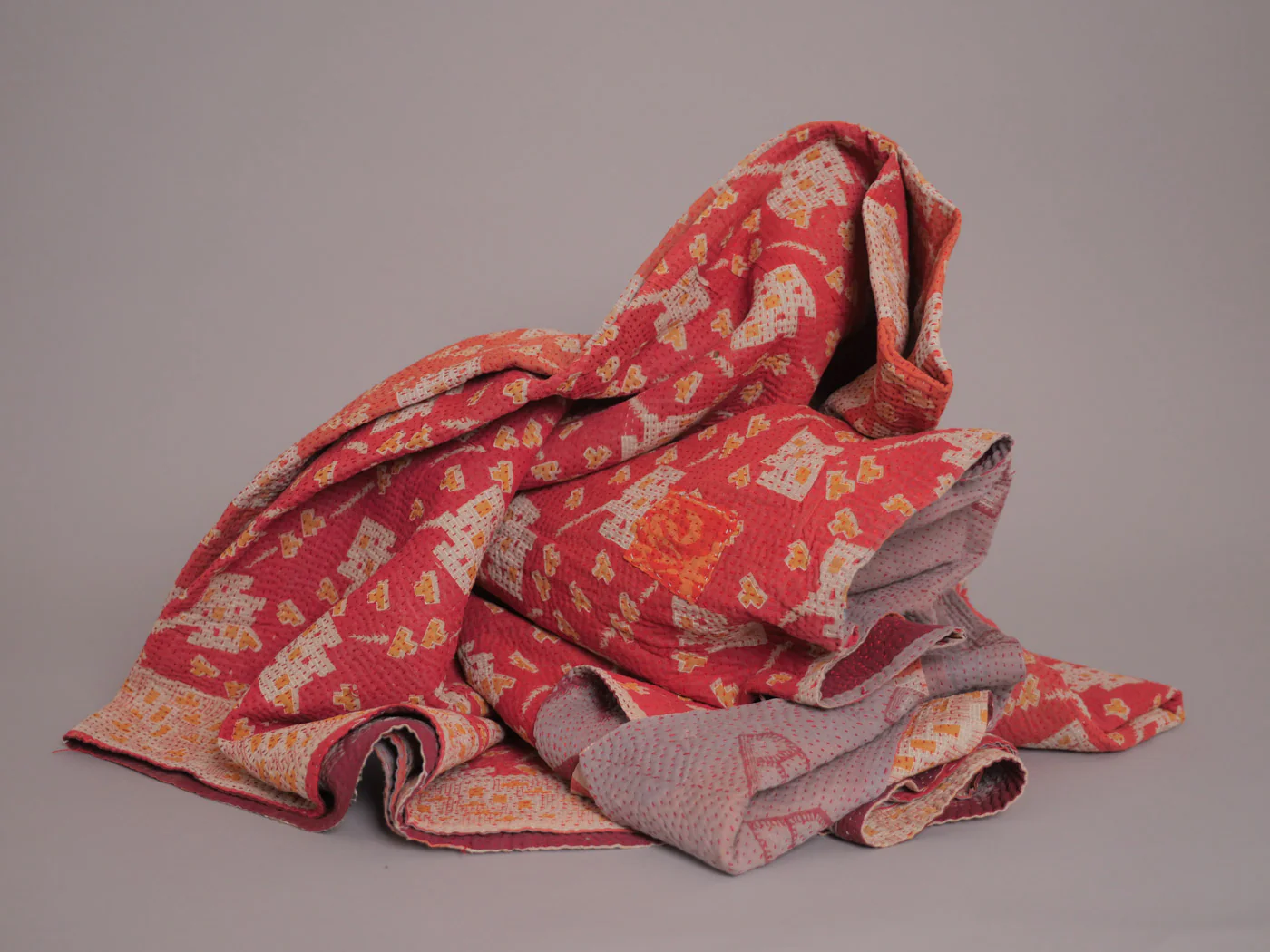 Le kantha, dont le nom provient du sanskrit « Kontha » signifiant chiffons, est une technique de broderie traditionnelle remontant à plusieurs siècles. Les femmes du Bengale assemblent et brodent à la main plusieurs couches de saris recyclés pour leur donner une nouvelle vie sous forme de couvre-lits. Au-delà de sa fonction textile, cette pratique constitue un véritable lien social et un moyen d’émancipation pour ces artisanes.