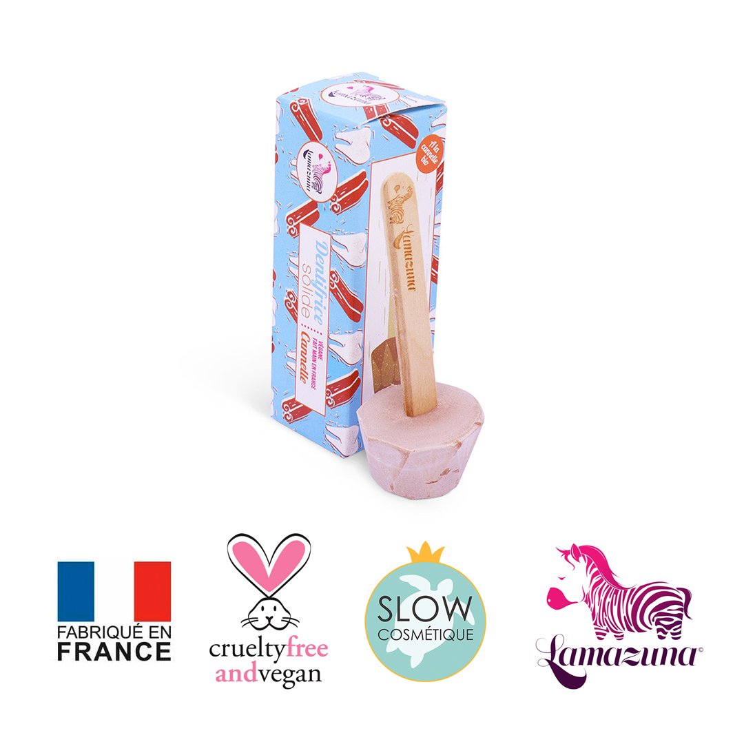 Le dentifrice solide Lamazuna est 100 % naturel et zéro déchet. Présenté sur un bâtonnet en bois, il est à la fois économique et écologique car il est totalement biodégradable, même son emballage, qui est en carton recyclé. Fabriqué à la main en France.