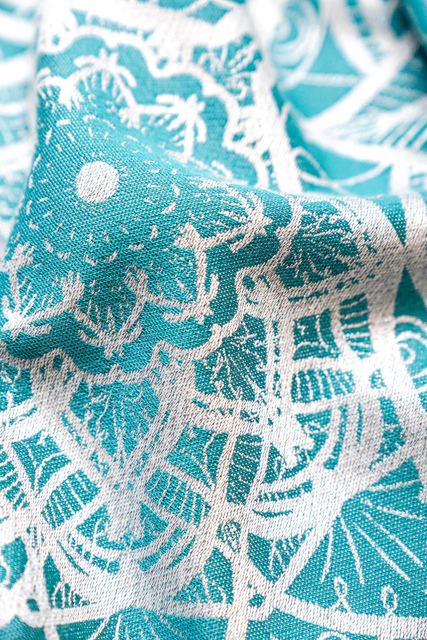 Es besteht aus hochwertigem Jacquard-Tragetuchstoff, gewebt aus 50 % Viskose (aus Bambus-Zellstoff), 49 % Bio-Baumwolle und 1 % Polyester – und bietet dir ein Trageerlebnis auf höchstem Niveau.
