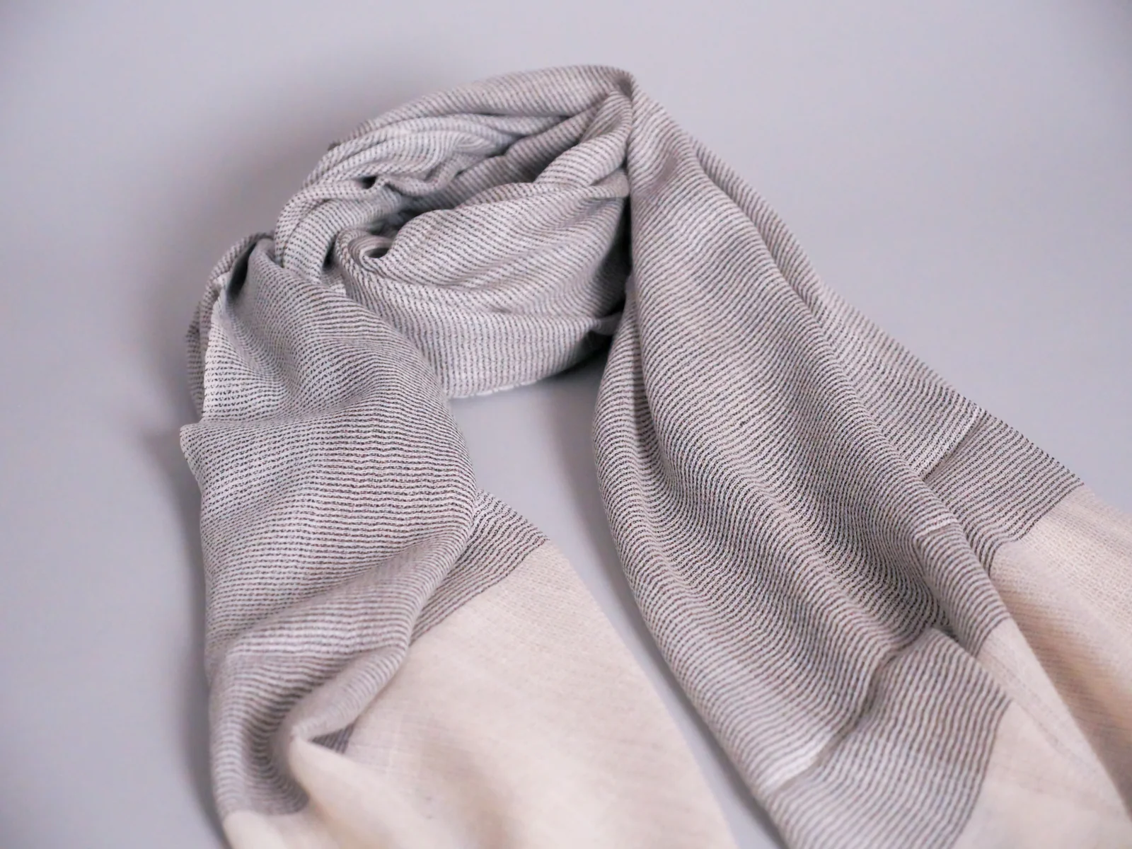 Écharpe en Cachemire et Soie Ultra-Douce. Beige et Gris.