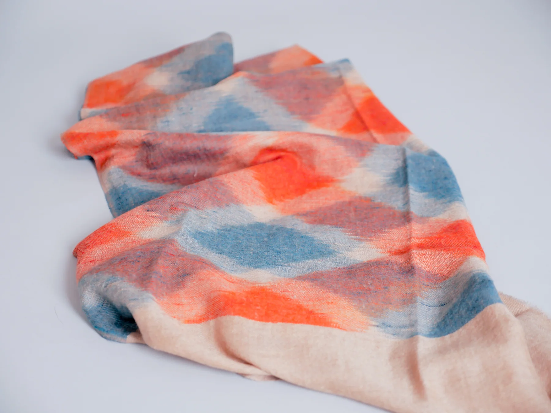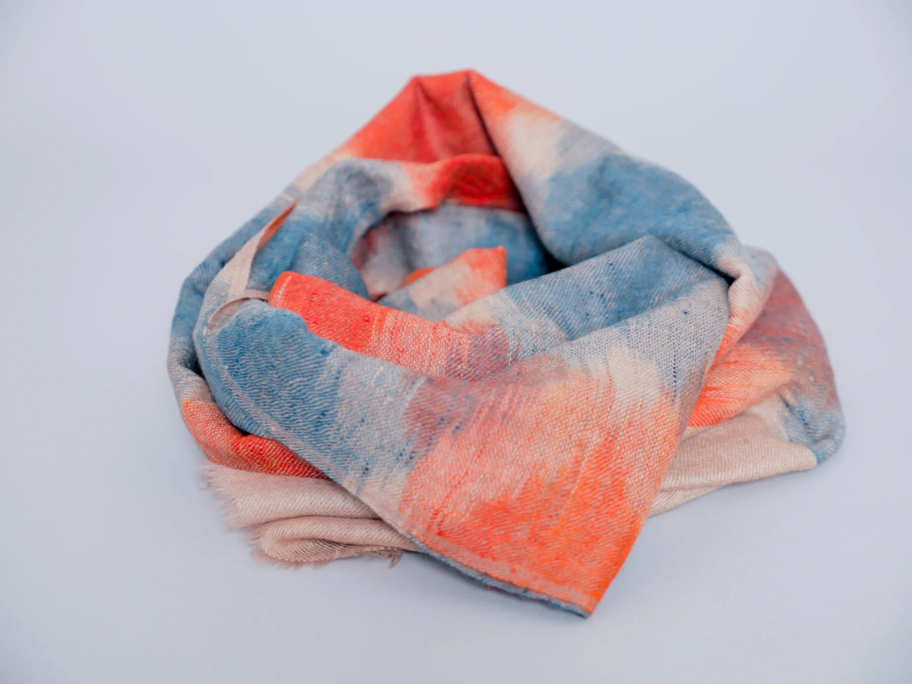 L’histoire : au cœur de Srinagar, dans l’État du Jammu-et-Cachemire, les tisserands disposent traditionnellement de grands métiers à tisser en bois dans leurs maisons. Les pièces sont réalisées sur commande en utilisant du cachemire fin de pashmina provenant de la région du Ladakh, en Inde.