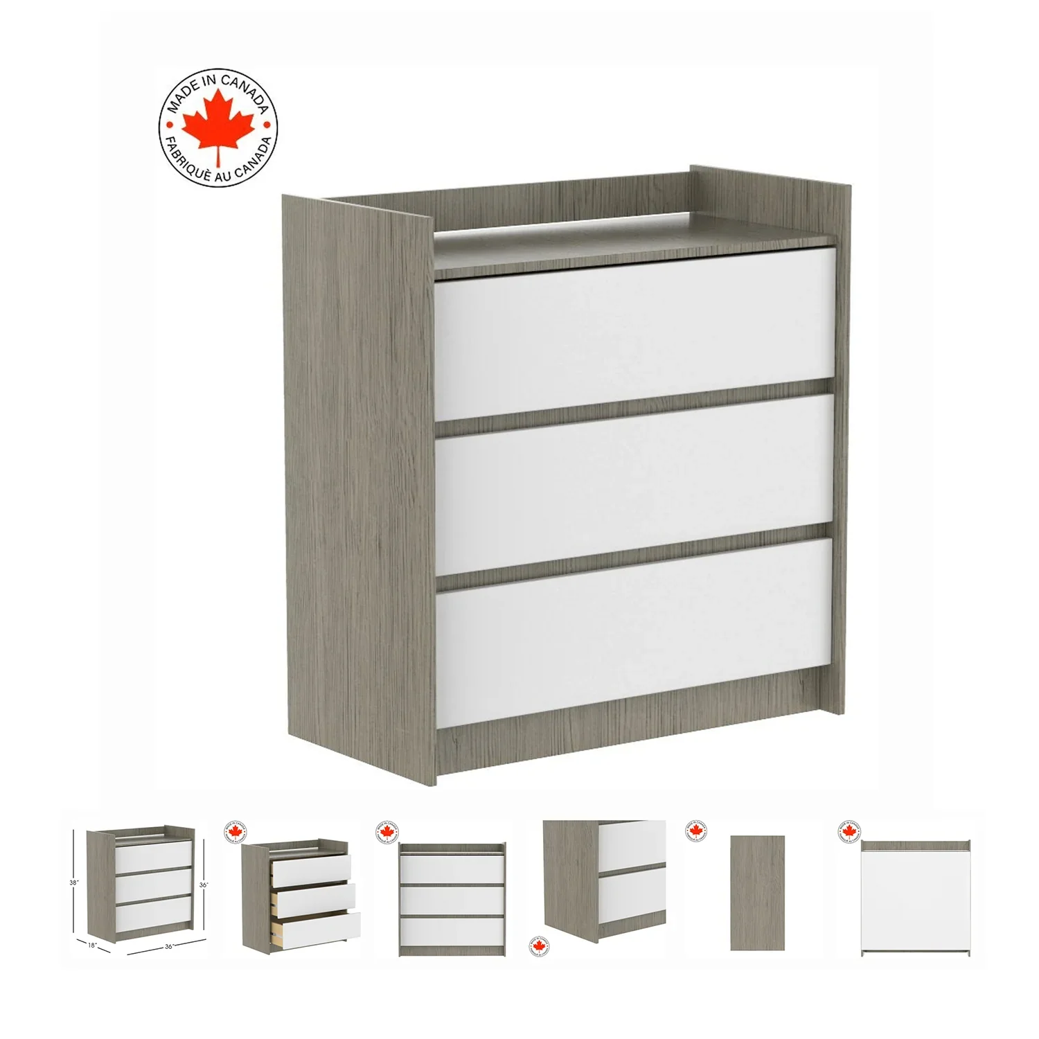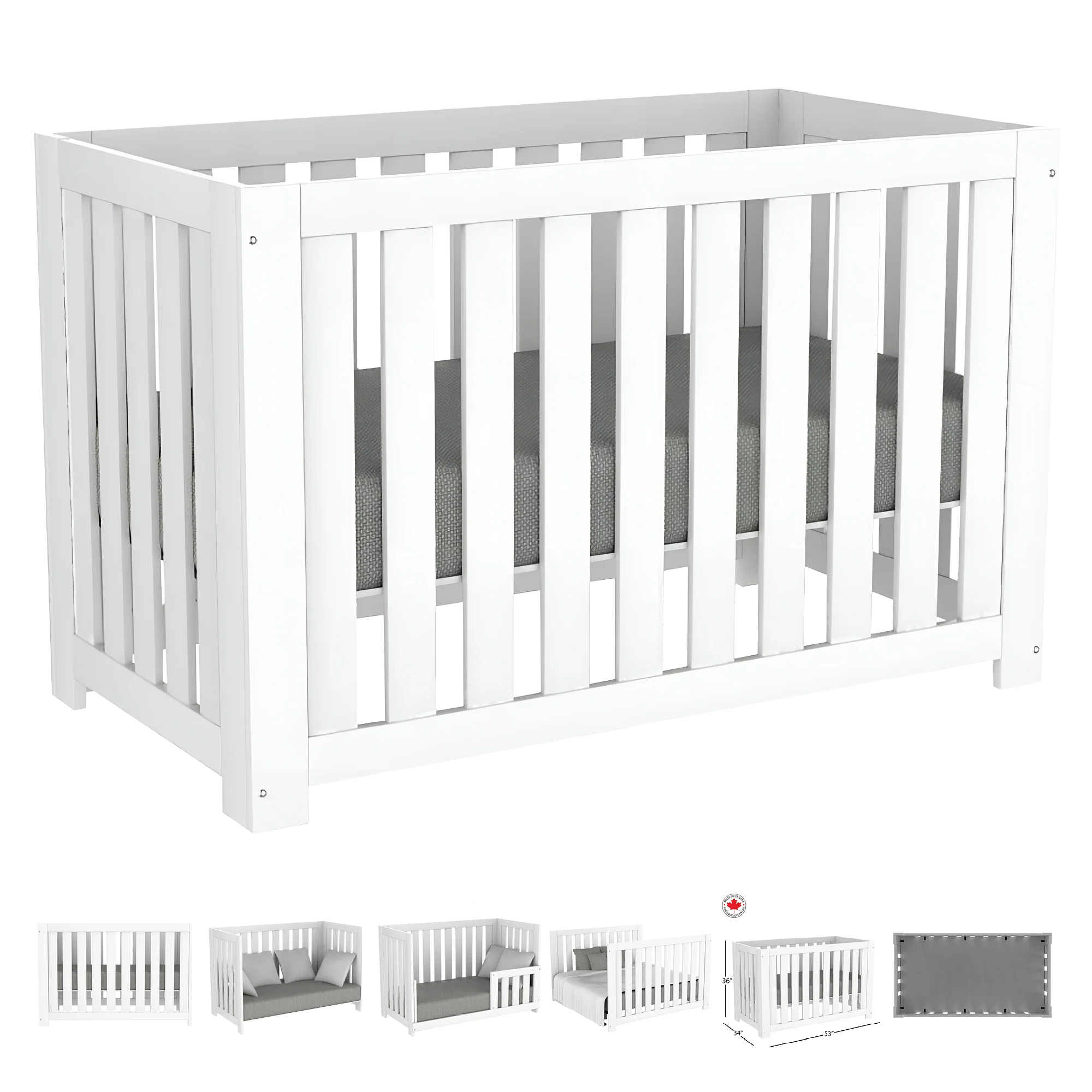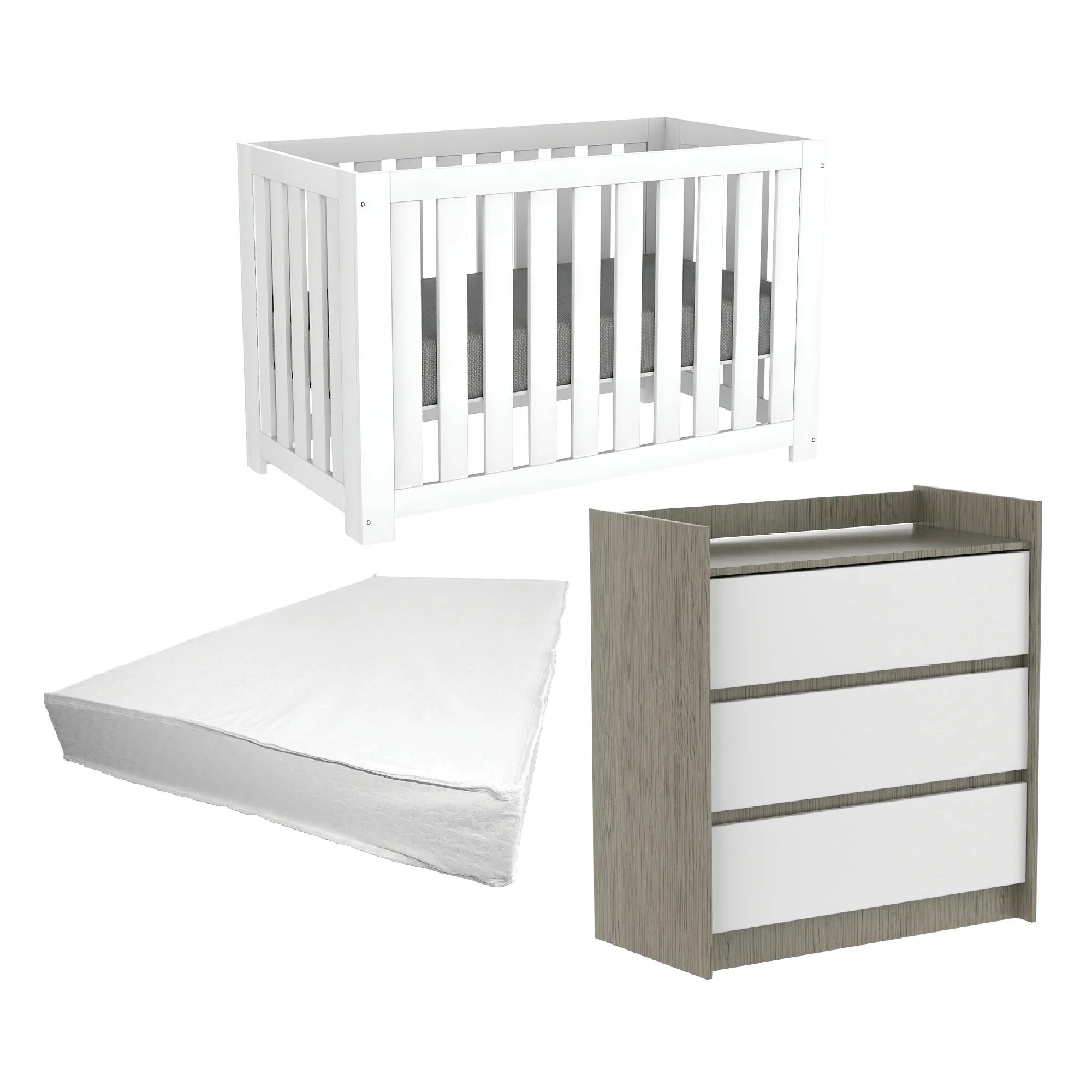 Ensemble complet de mobilier pour chambre de bébé – Lit évolutif Adriana, commodes Alex et matelas de bébé | Blanc et gris | Canada