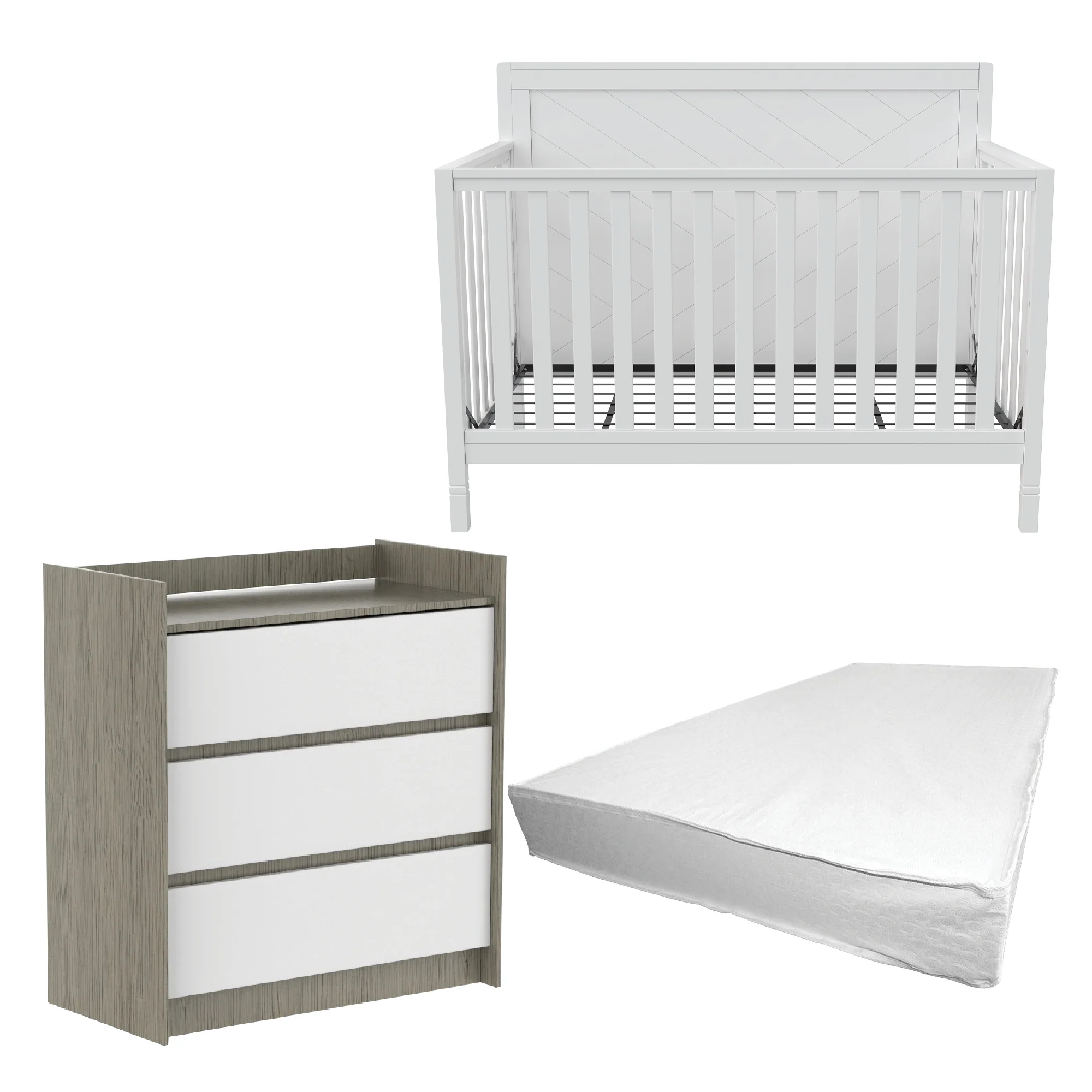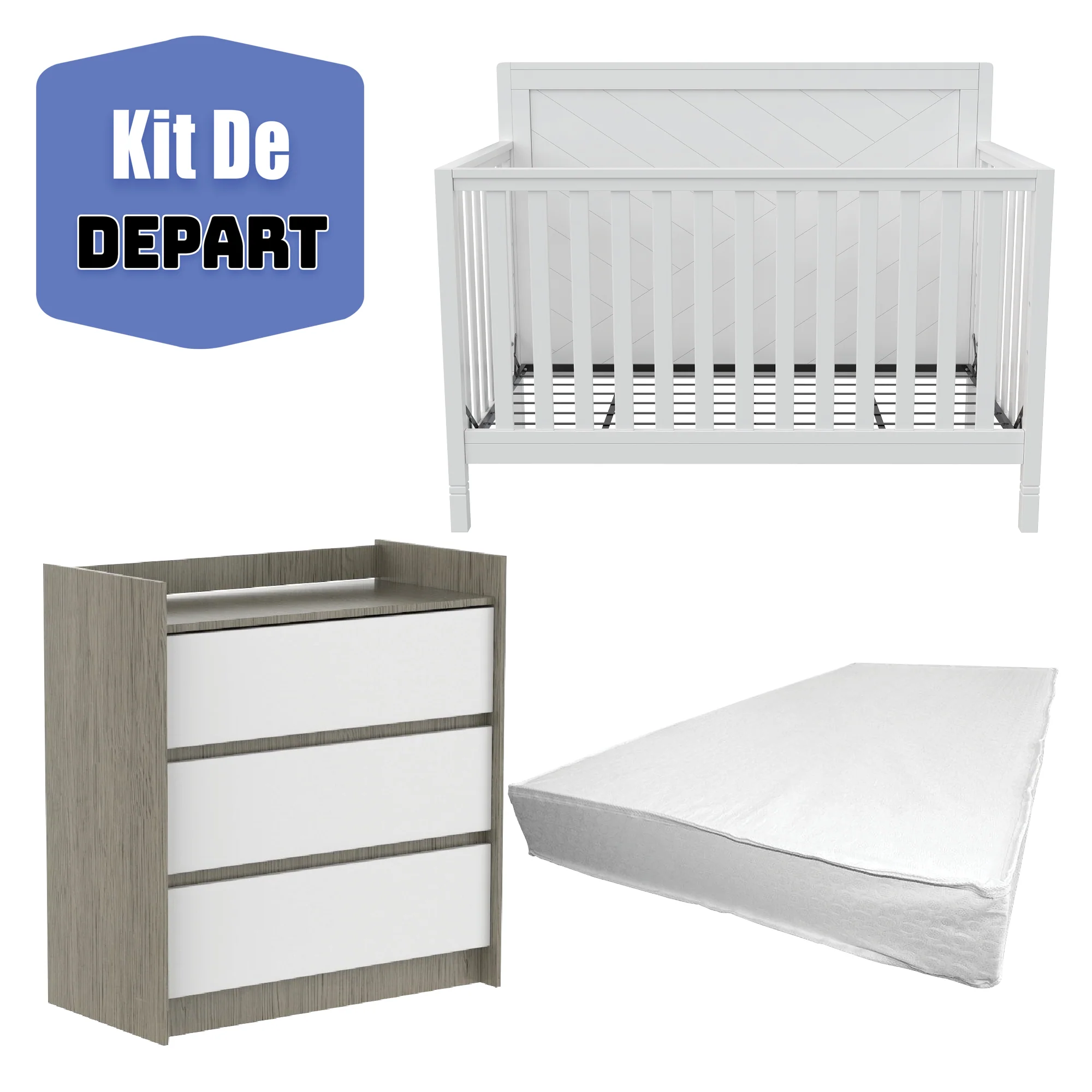 Ensemble 3 pièces bébé boobeyeh lit moderna et table à langer alex, tout blanc