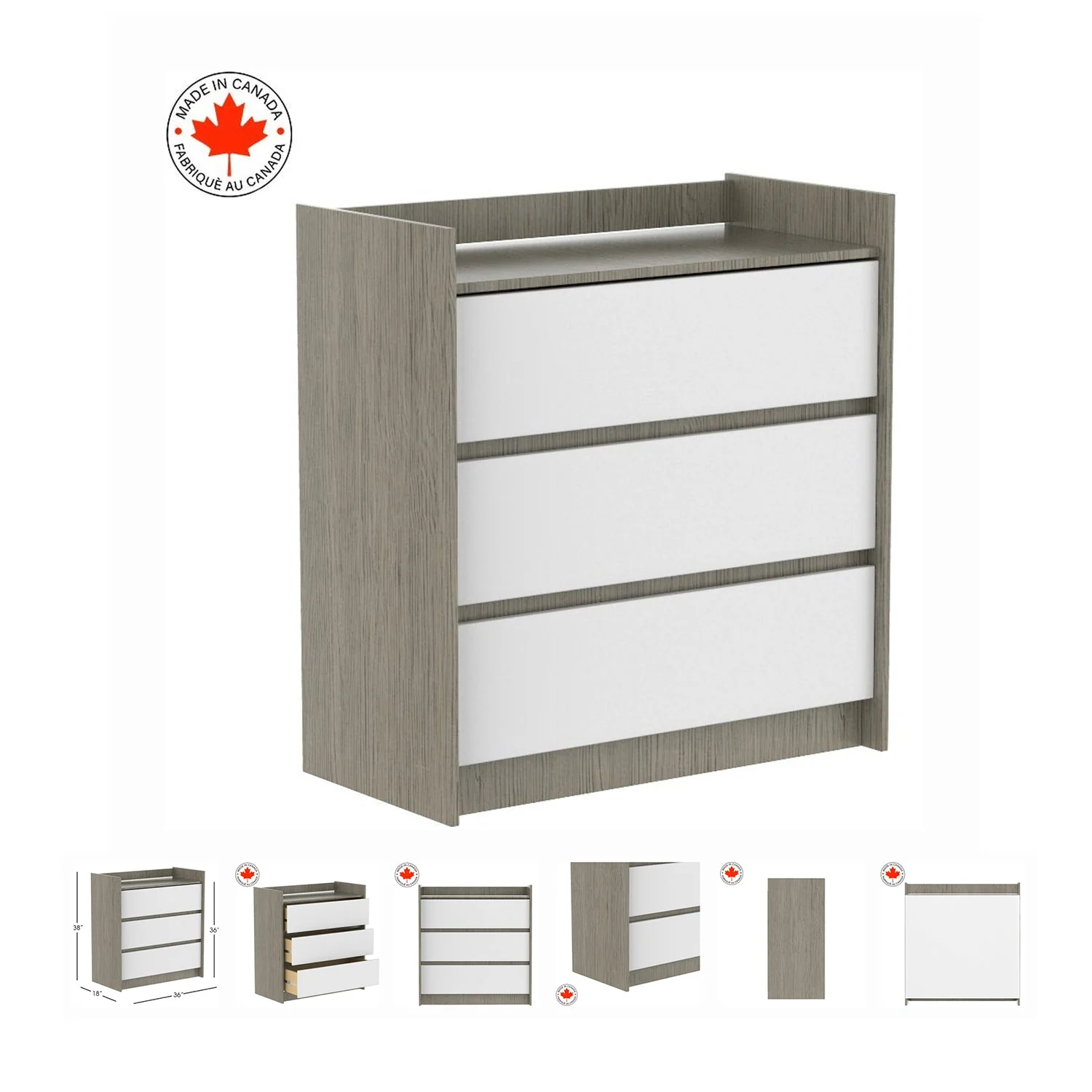 Ensemble complet de mobilier pour chambre de bébé – Lit évolutif Adriana, commodes Alex et matelas de bébé | Blanc et gris | Canada