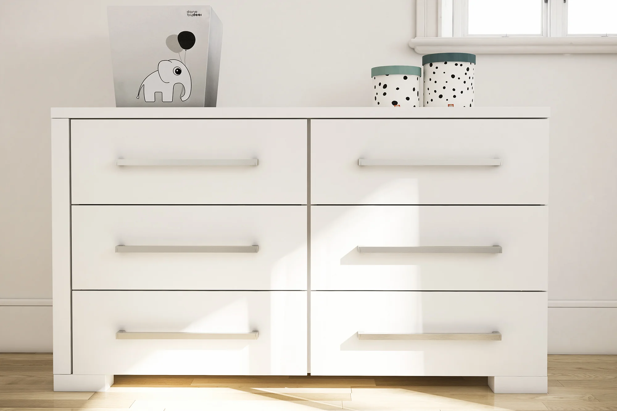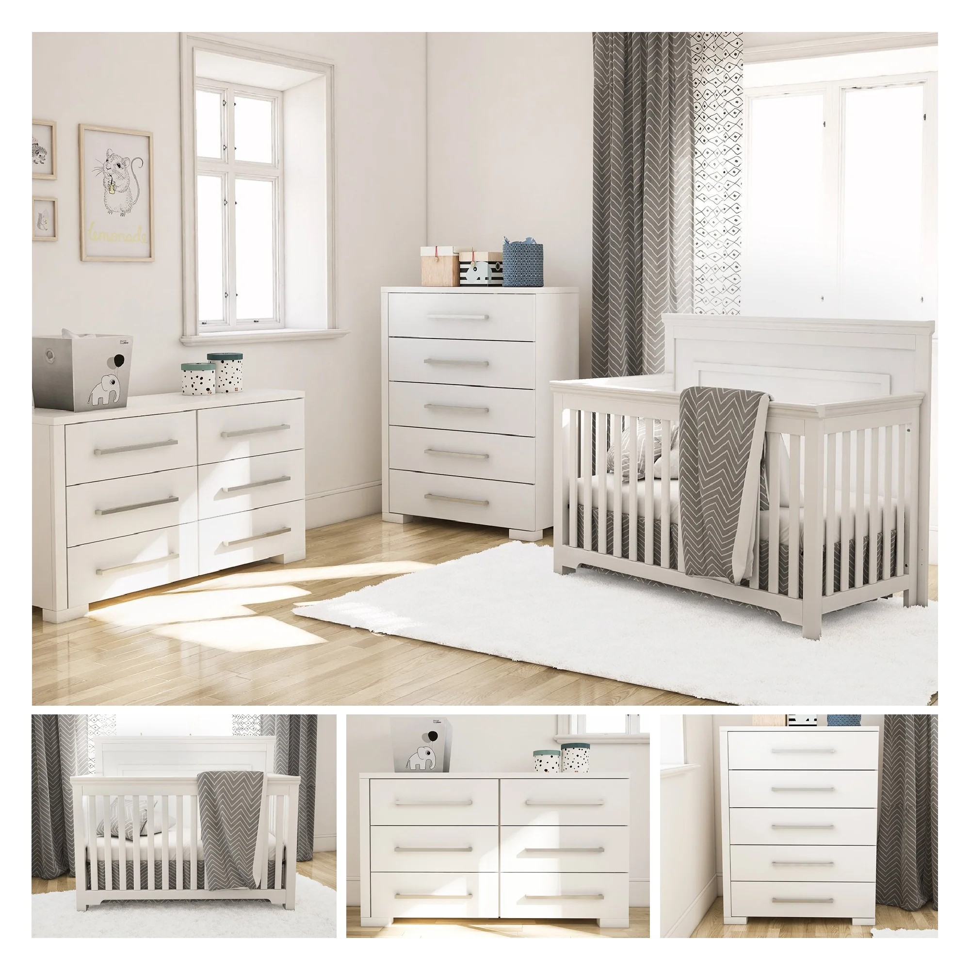 Optimisez l’espace, la sécurité et la fonctionnalité de la chambre de votre bébé avec la gamme de meubles évolutifs Joanna. Fabriquée à la main par des artisans ébénistes au Canada, cette collection comprend un lit bébé convertible 4 en 1, un bureau avec 5 tiroirs et une commode avec 6 tiroirs pour s’adapter à tous les styles de décoration.