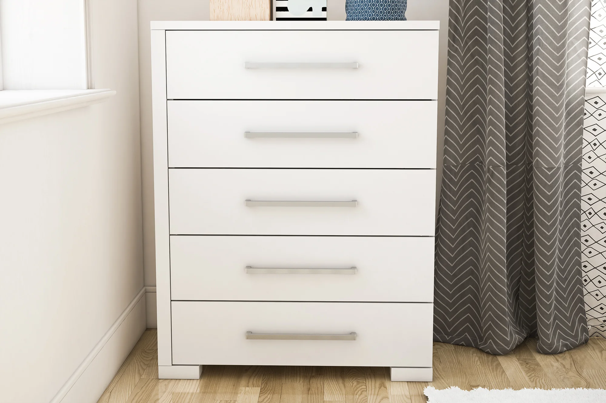 Le bureau à 5 tiroirs mesure 32 pouces x 17 pouces x 47 pouces et est également fabriqué en bois massif et monté avec soin au Québec. Il offre un ample espace de rangement pour aider à maintenir la chambre de votre enfant organisée.