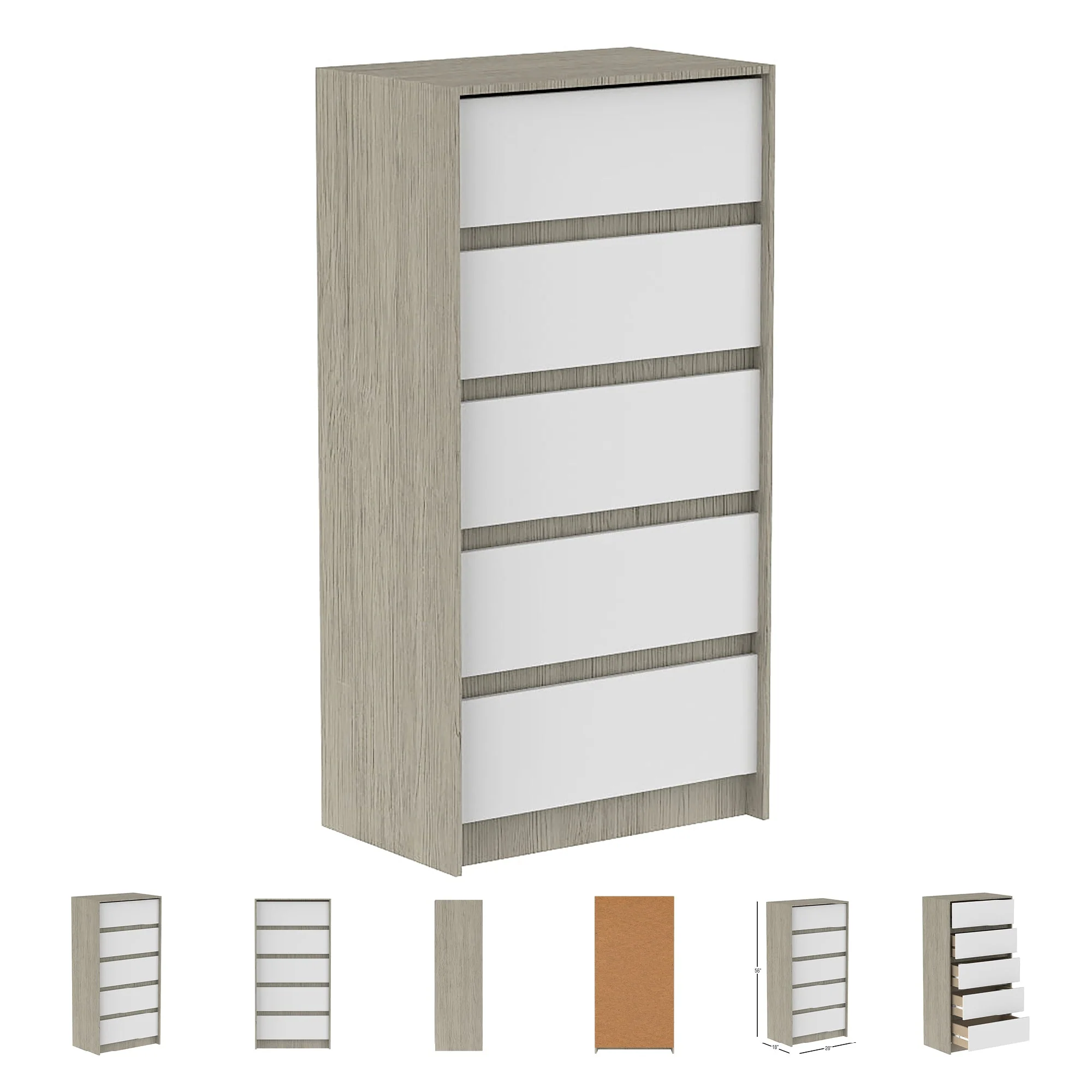 Commode Boobeyeh Alex à 5 tiroirs (Blanc et gris)
