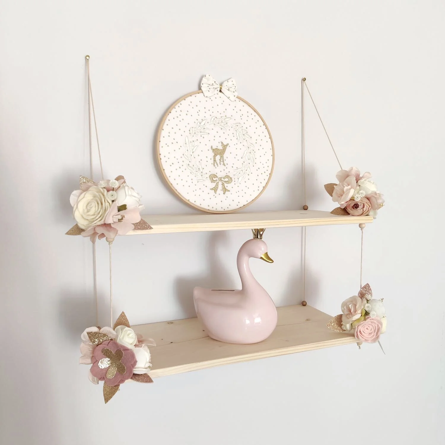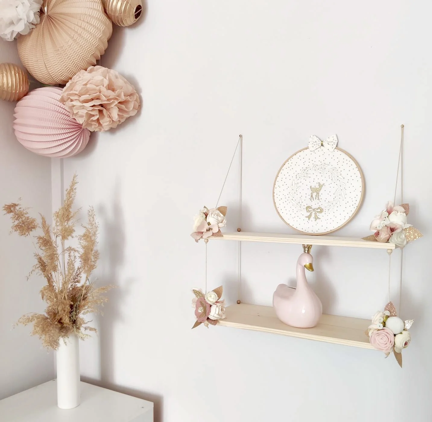 Etagère balançoire bouquets fleuris vieux rose et nude