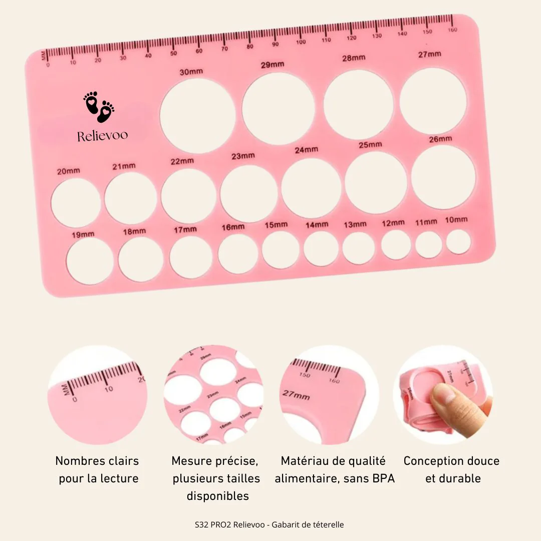 Pour les mamans qui souhaitent optimiser leur expérience d’allaitement avec le Tire-Lait S32 PRO2© de Relievoo™ notre Gabarit de Téterelle est l’outil idéal pour choisir la taille de téterelle la mieux adaptée à leurs besoins. Assurer un bon ajustement est crucial pour le confort et l’efficacité du tire-lait, et notre gabarit vous aide à faire le meilleur choix en toute simplicité.