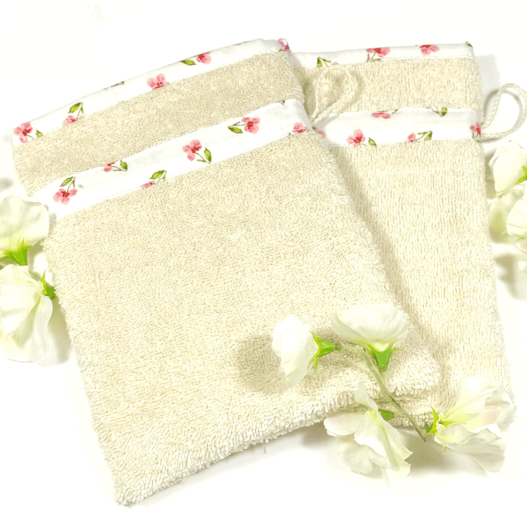 Gants de toilette Bio Pensées en coton biologique certifié GOTS, ultra doux, très absorbants et sans substances nocives. Idéals pour bébé et peaux sensibles. Vendu par lot de 2