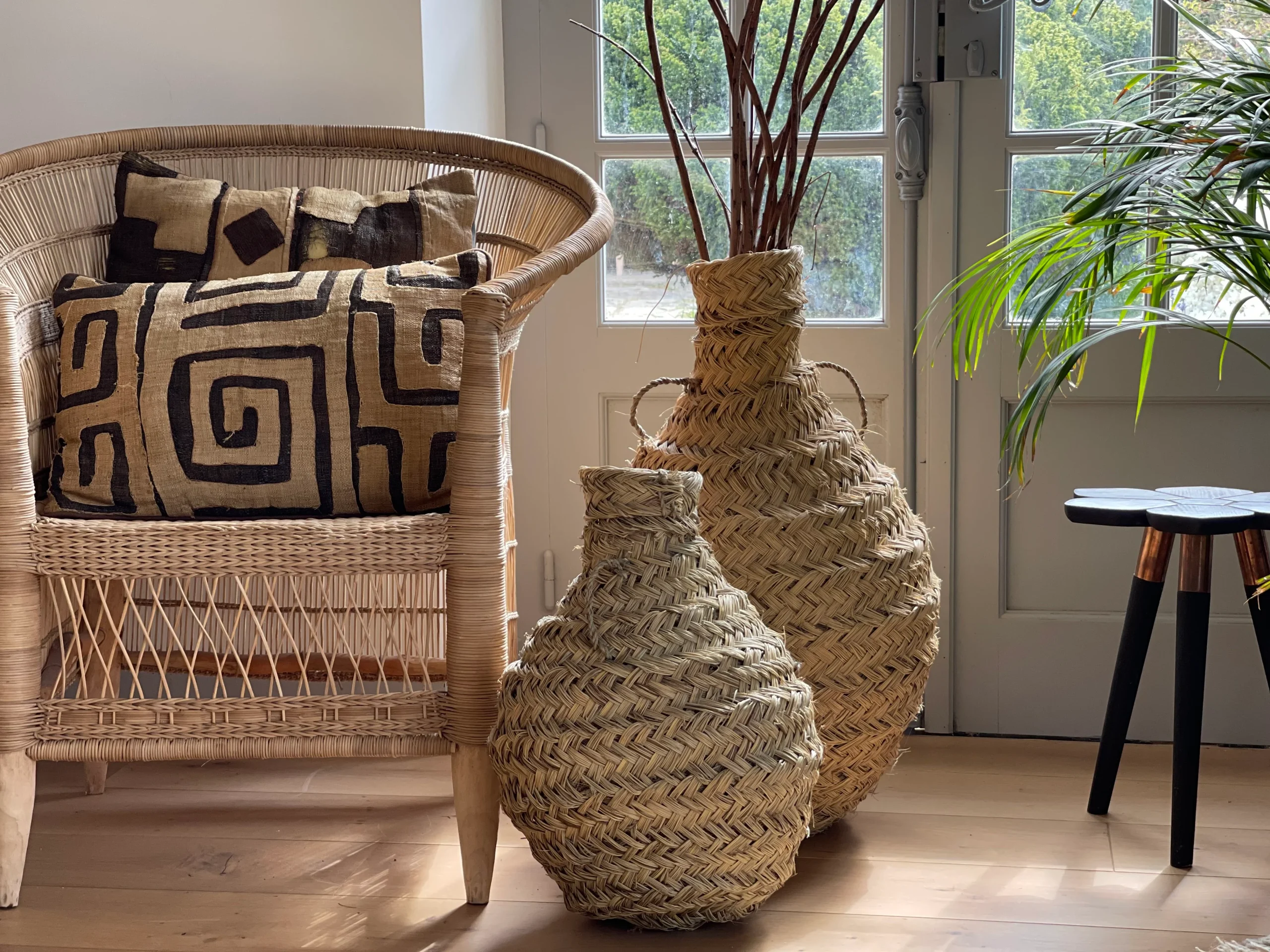 Nos jarres sont entièrement fait main de ce fait les dimensions peuvent légèrement différer. Mettez la jarre au soleil en été pour que la fibre obtienne une jolie couleur dorée