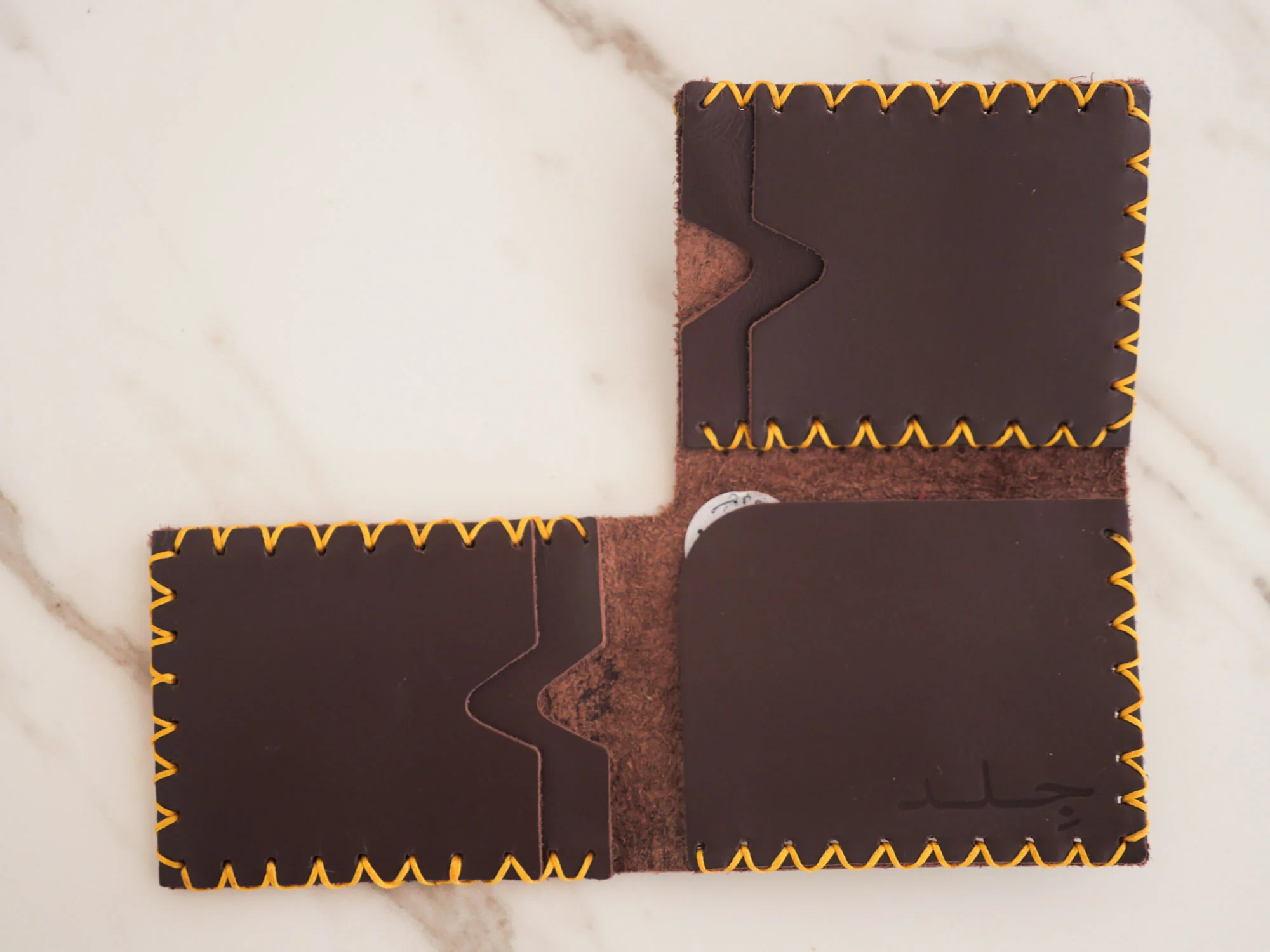 Produit: portefeuille en cuir de vachette fait main. 10 x 7x 1.5cm