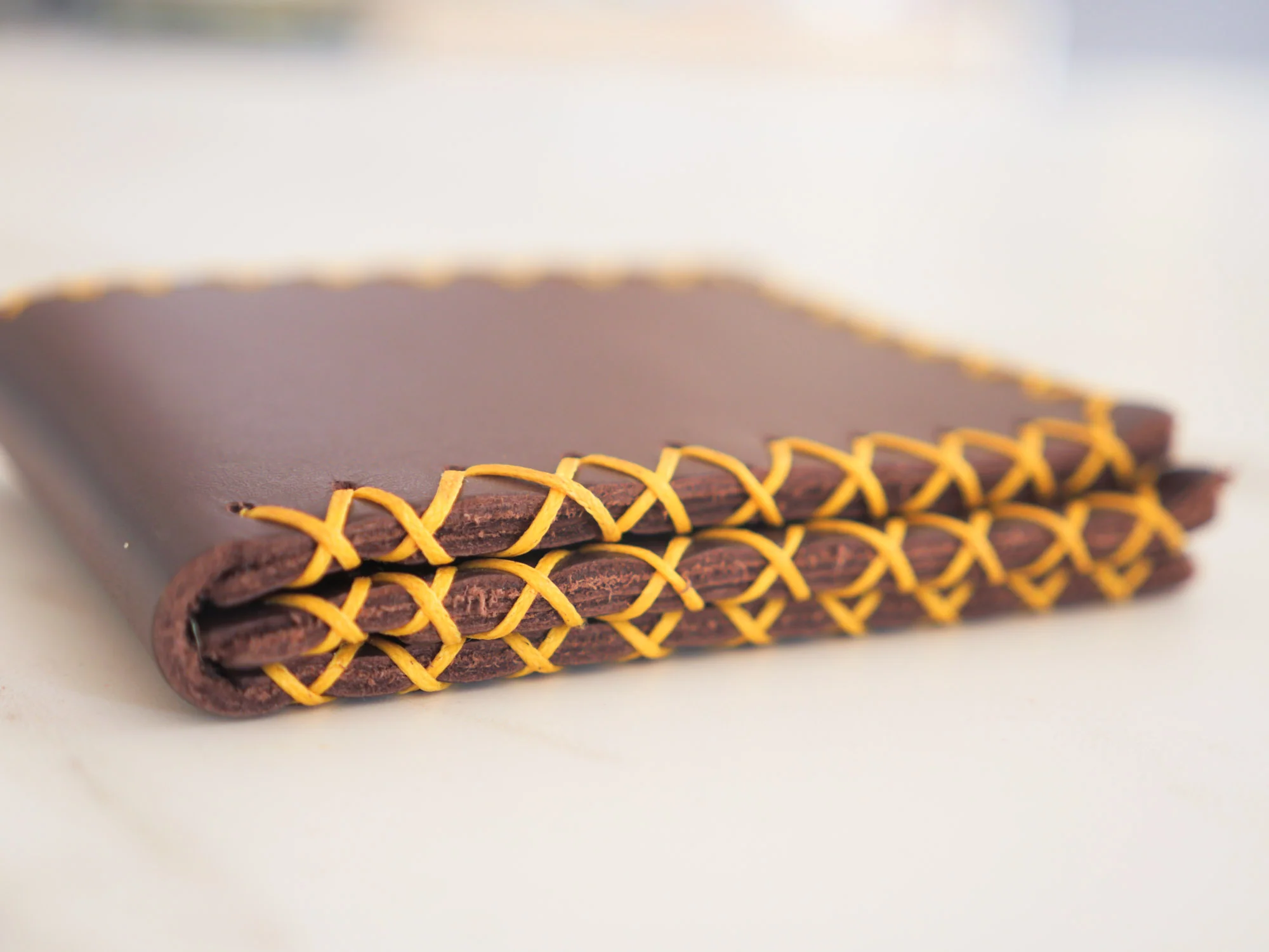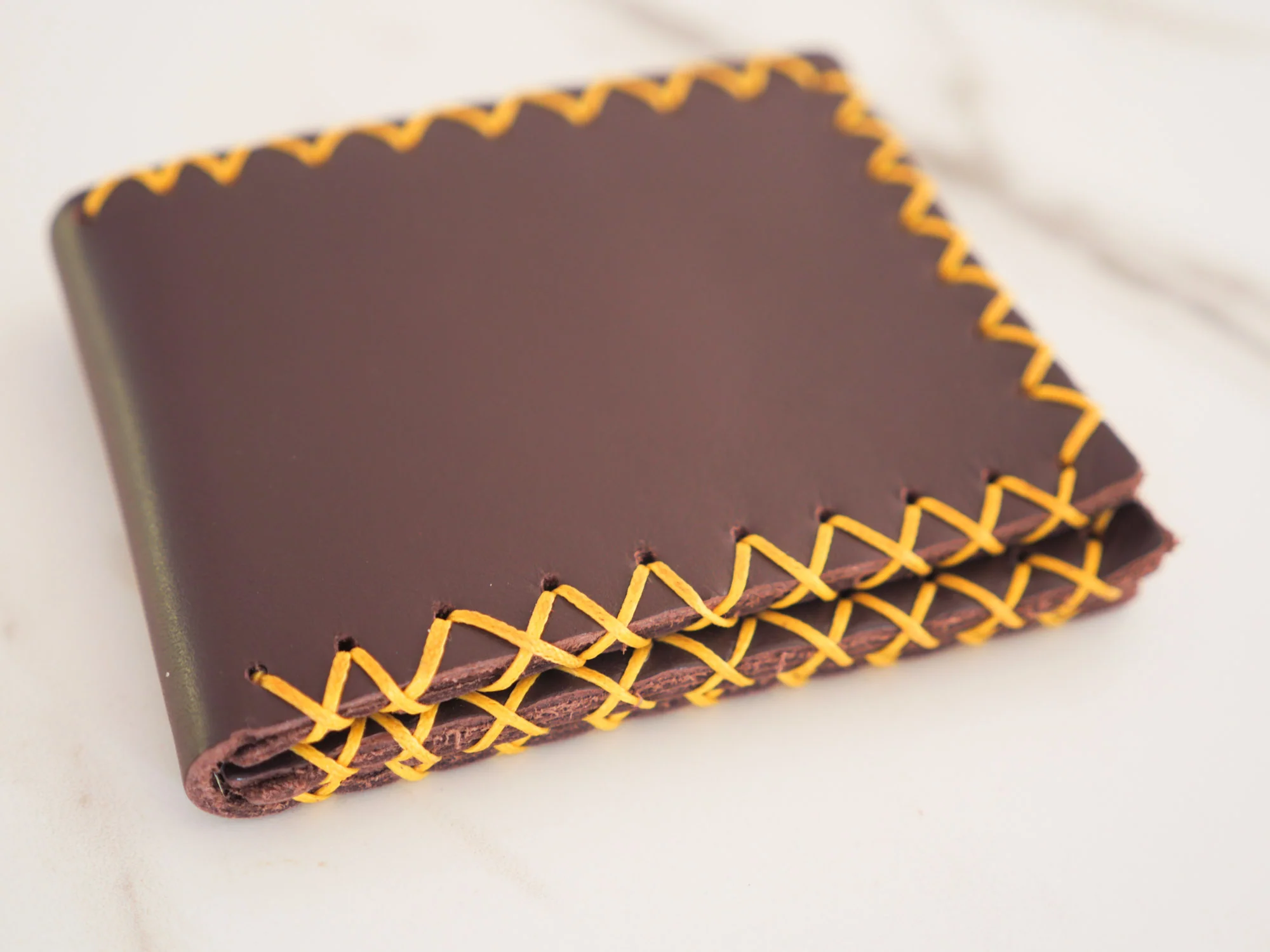 Une seule pièce de cuir tanné, pliée trois fois, un design intemporel. La simplicité du design ajoute également à sa fonctionnalité, c’est une pièce qui ne se cassera jamais et qui deviendra plus belle avec le temps.